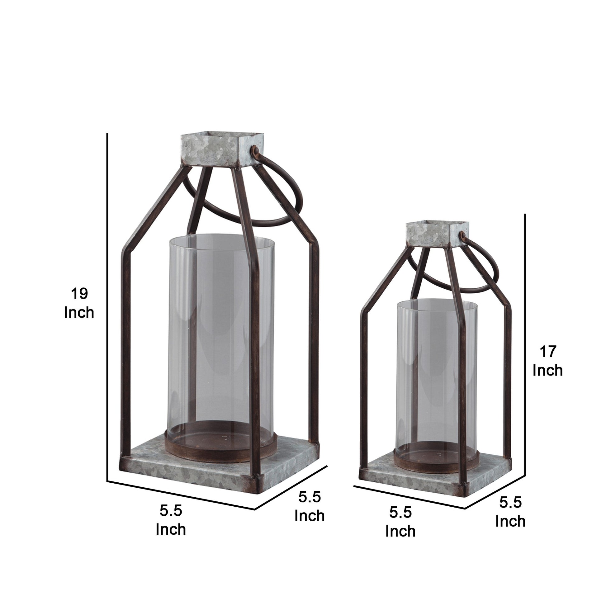 Geometric Lantern With Glass Hurricane Set Of 2 Black And Gray