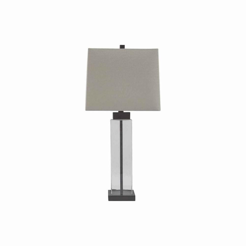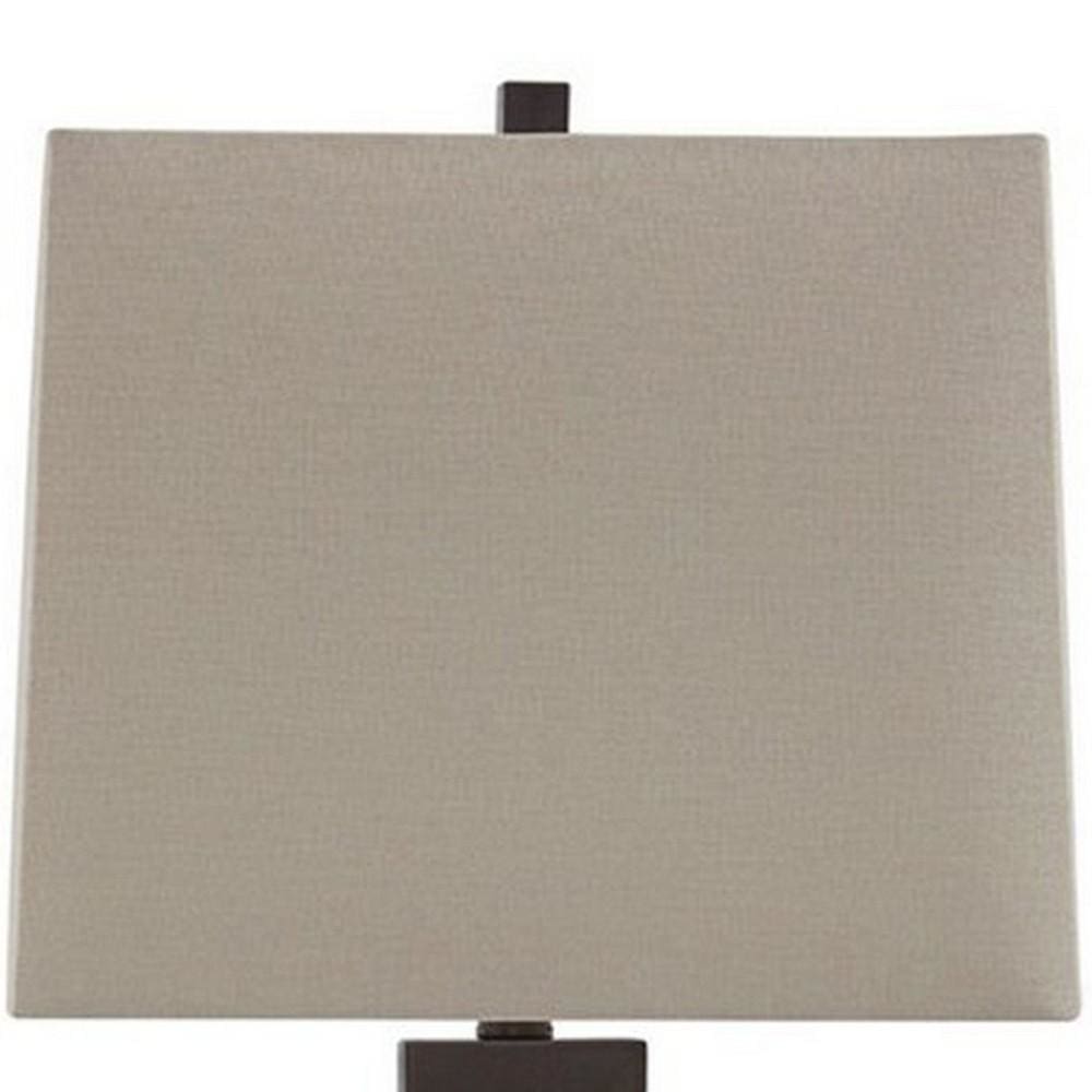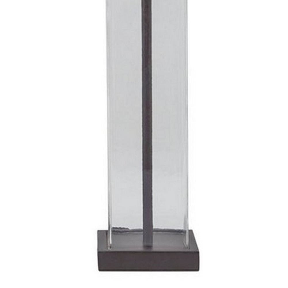 Infuse minimalism in your home with the simplistic design of this Table Lamp. Incorporated with a square fabric hardback shade, it comes in a linear design with transparent glass complemented with a bronze tone metal base that imparts sturdiness and stability to the Lamp.
