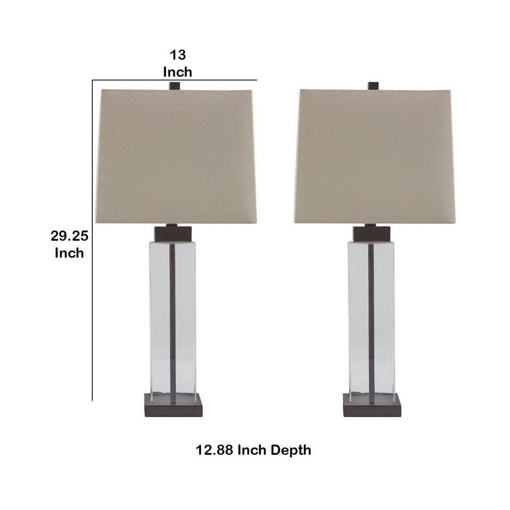 Glass and Metal Base Table Lamp with Square Shade Set of 2 Clear and Gray