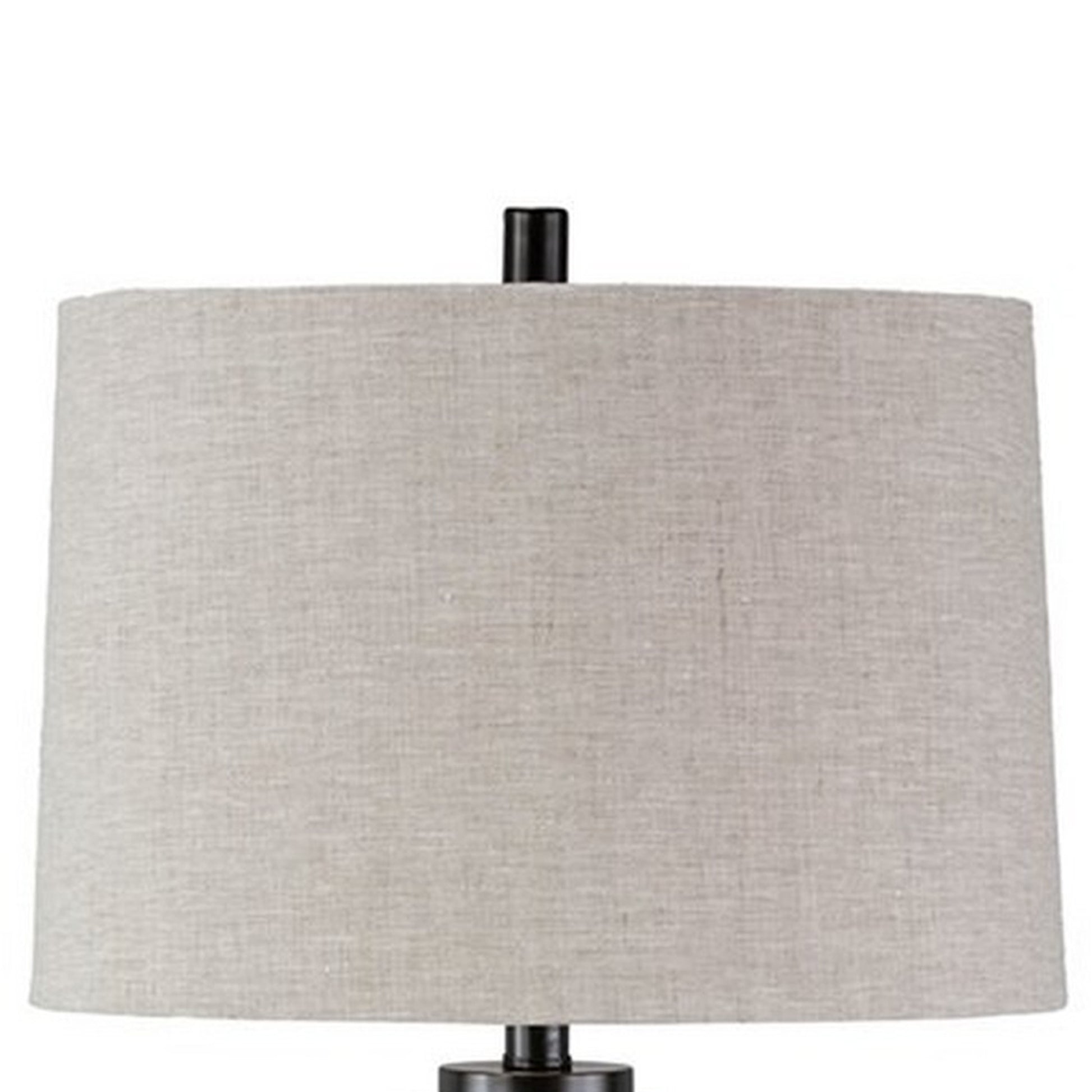 Emblaze your existing decor setting by bringing in this contemporary Table Lamp which comes with a drum shade and rests on a cylindrical glass base accompanied with black finished metal accent. Wrapped with gray color fabric, it will be a perfect addition to your place.