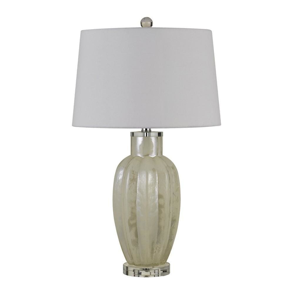 Glass Table Lamp with Round Hardback Fabric Shade White