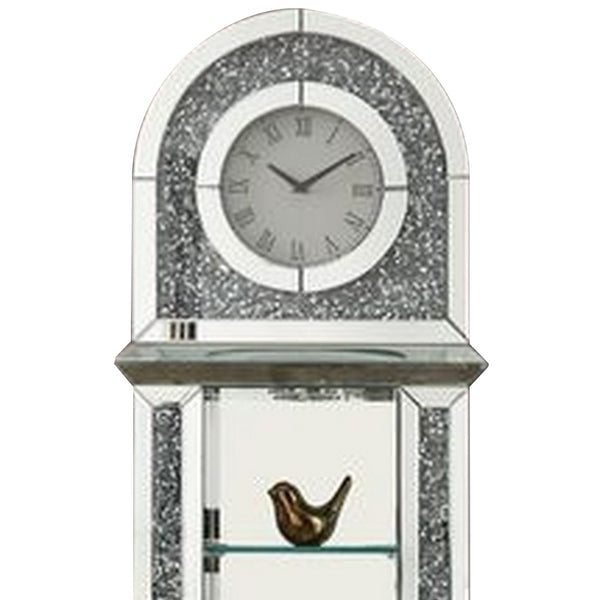 Grandfather Clock With 1 Drawer And Mirror Frame Silver