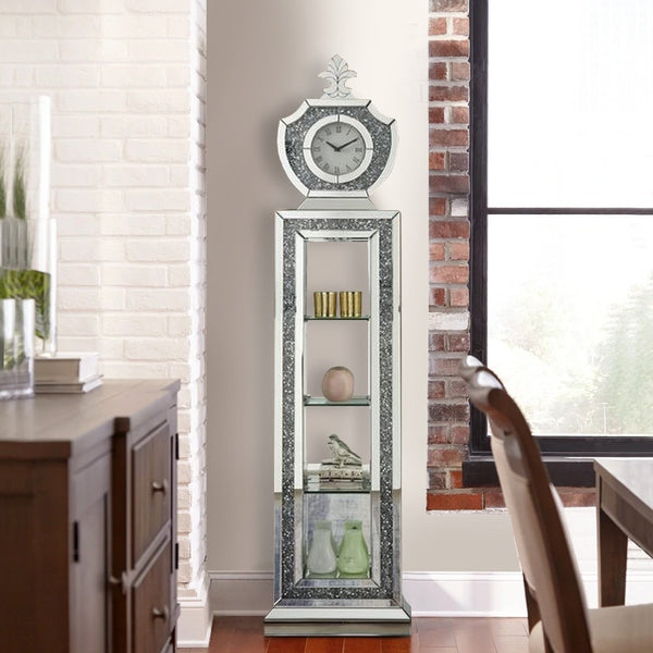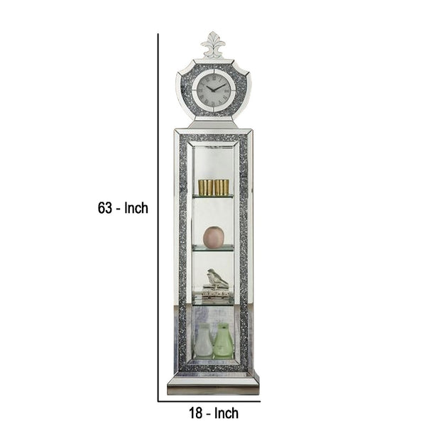 Grandfather Clock With 4 Compartments And Mirror Frame Silver