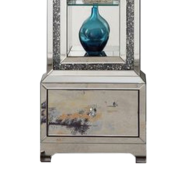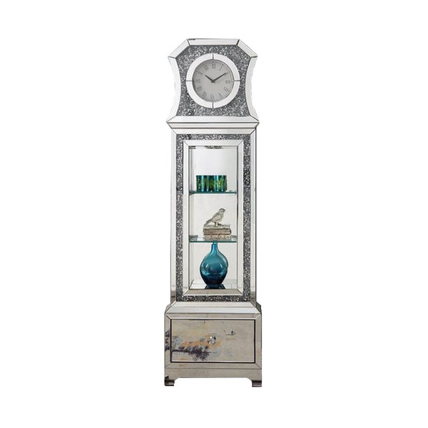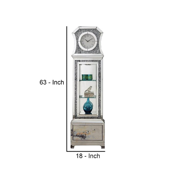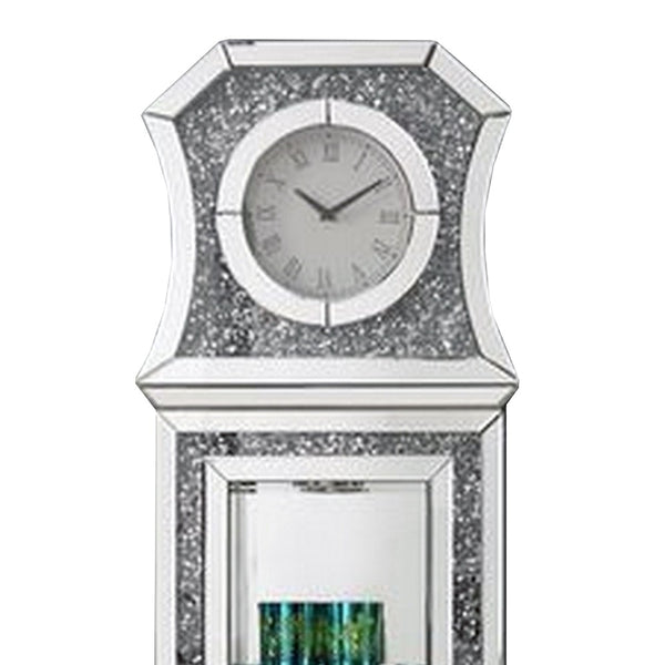 Grandfather Clock With Mirror Framing And Faux Diamonds Silver