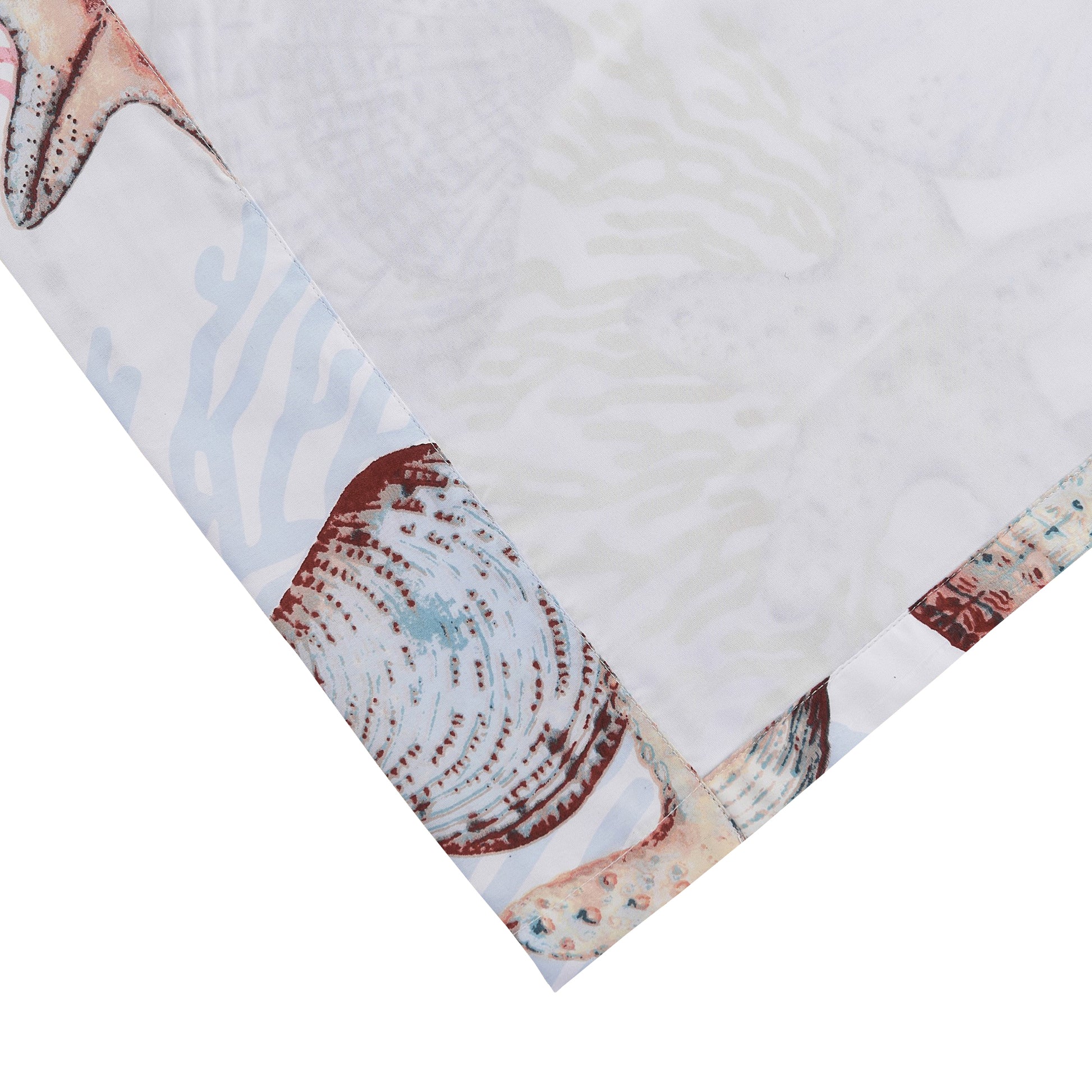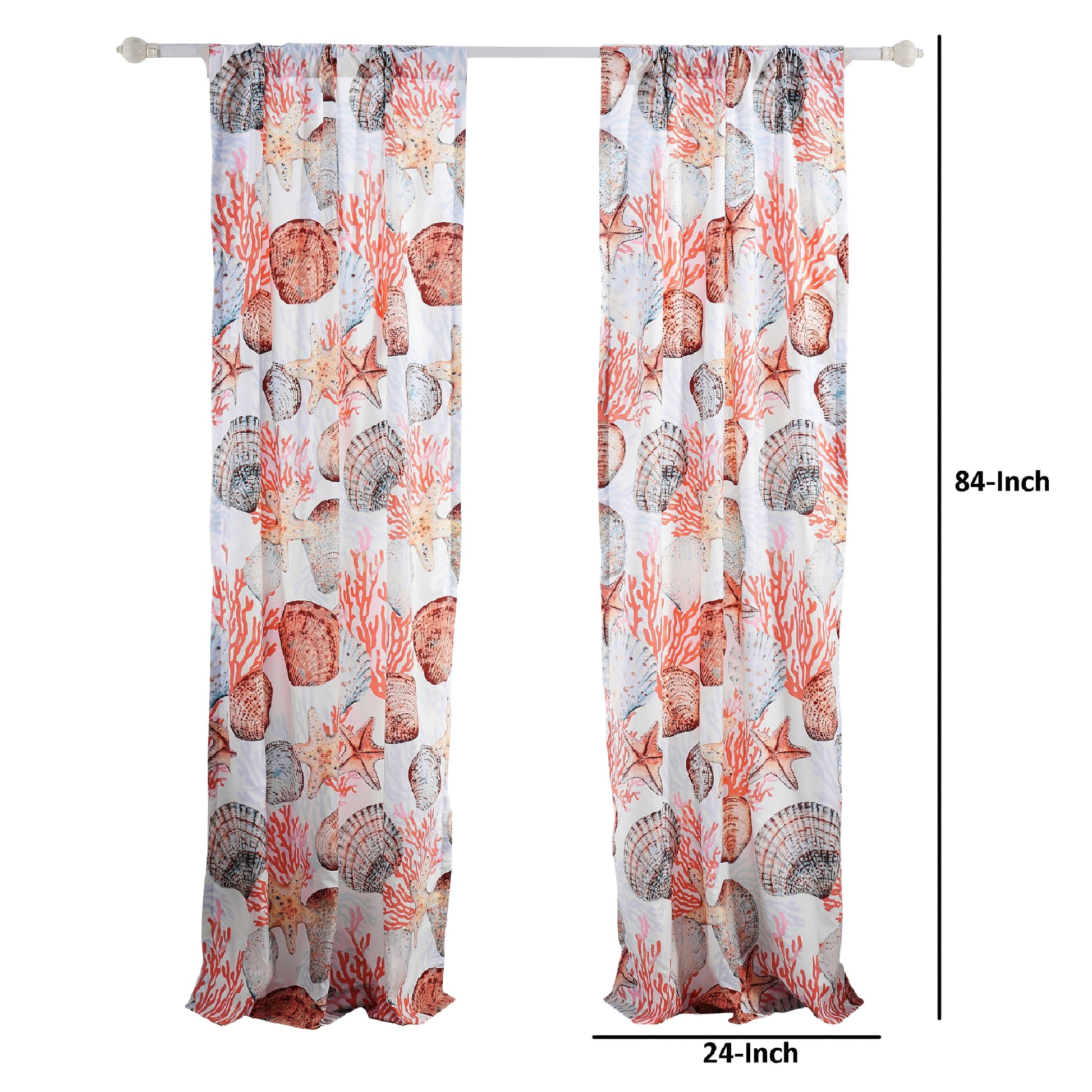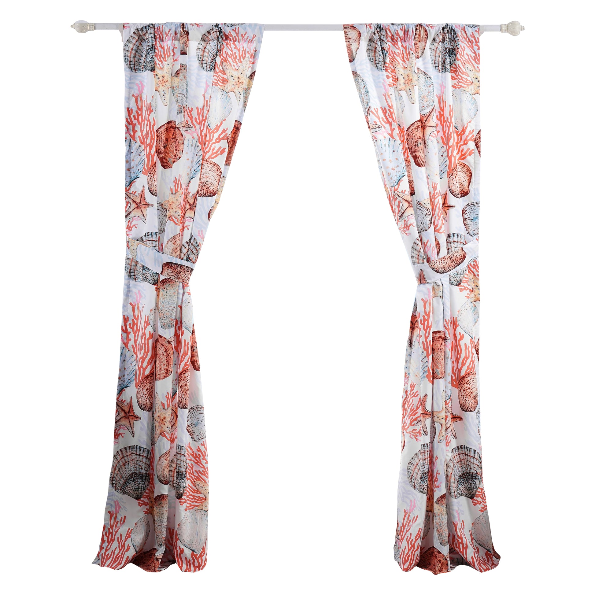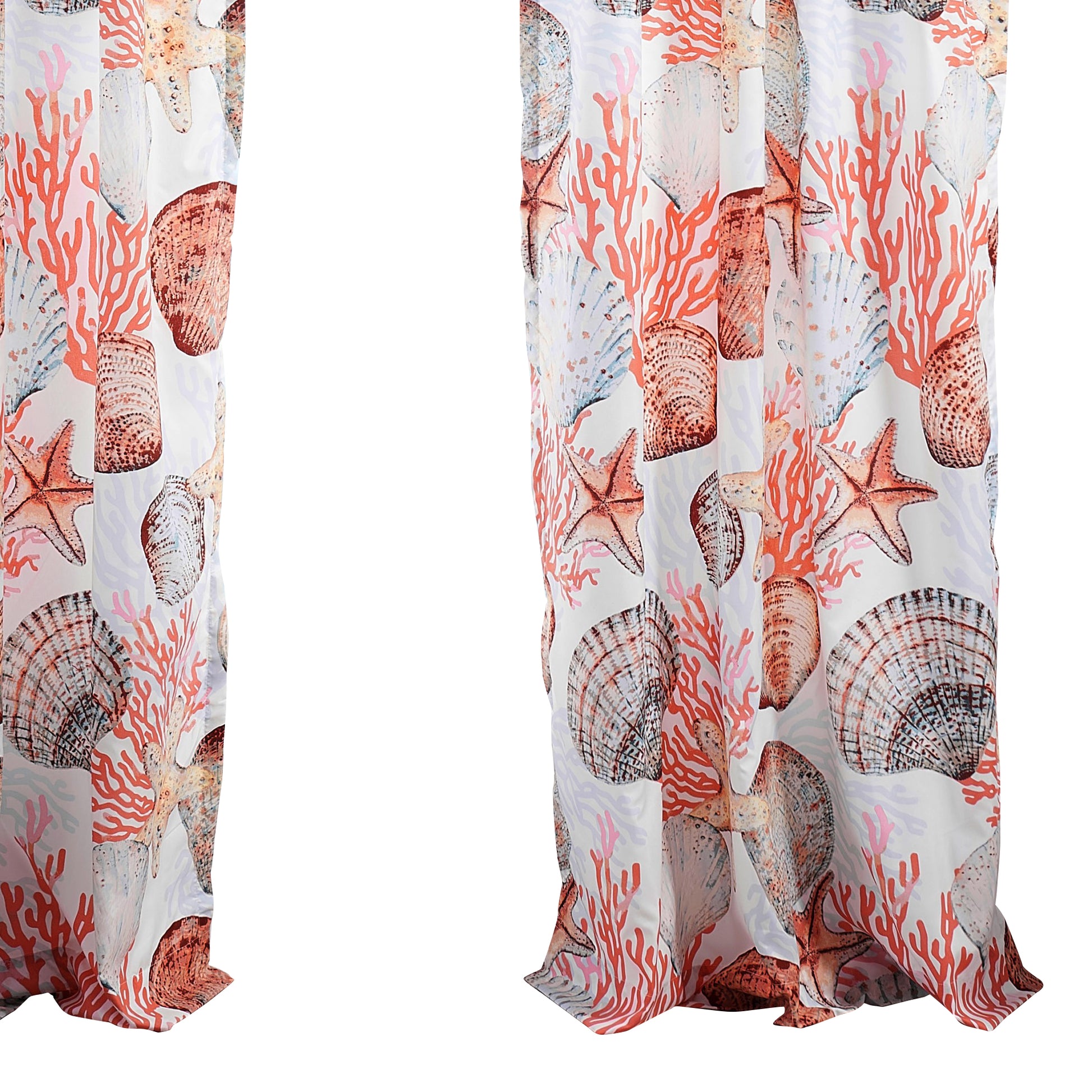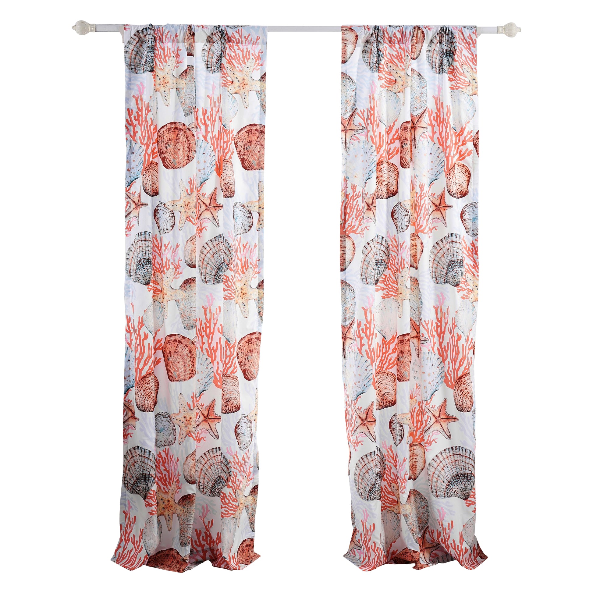 Set the mood for comfort and style in your home with this gorgeous set of window curtains. Printed with seashells and coral against a soft light blue background for a distinctly coastal vibe, this piece provides perfect privacy, a customizable amount of natural lighting, and a sense of modern panache. Check out our Gul collection for matching items.