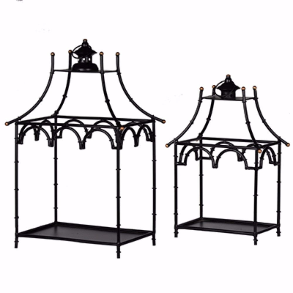 Add a distinctive accent to your home with this set of two Candle Lanterns. Designed with tubular frame, these Candle Lanterns lend enchanting flair to your home. This set of two different sized candle lanterns feature sturdy black metal construction.