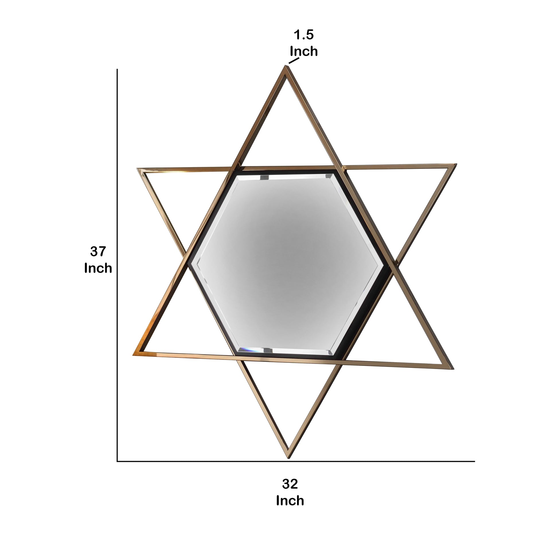 Hexagon Shaped Wall Mirror With Star Frame Champagne Gold