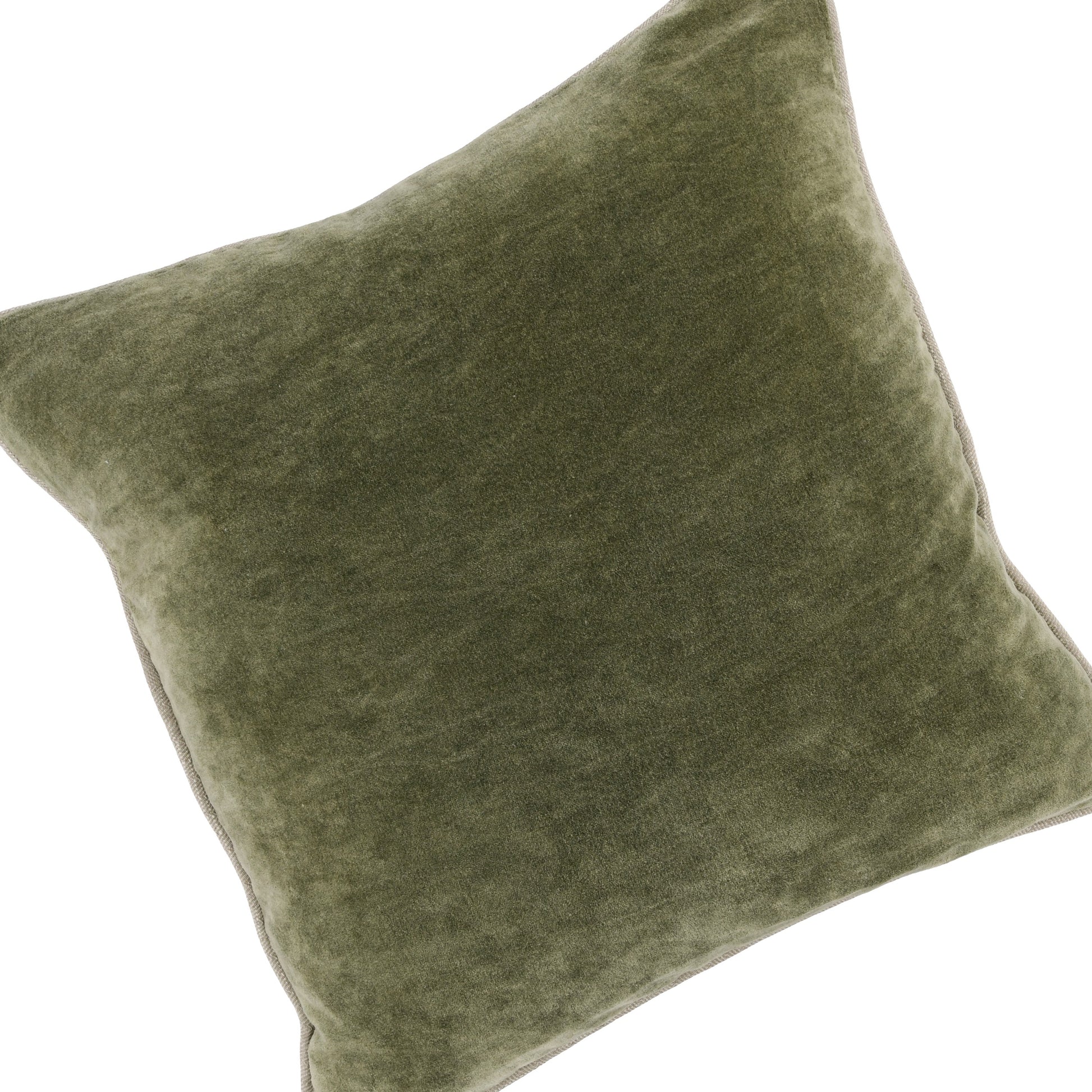Add warmth and comfort to your sofa, bed, or accent chairs with this throw pillow from our best selling Hillary collection. Featuring a square shape with herringbone welt cord edges, it is generously filled with duck feathers and duck down for ultimate comfort. The ultra soft and monochromatic moss green cotton velvet cover adds character to your interior decor.