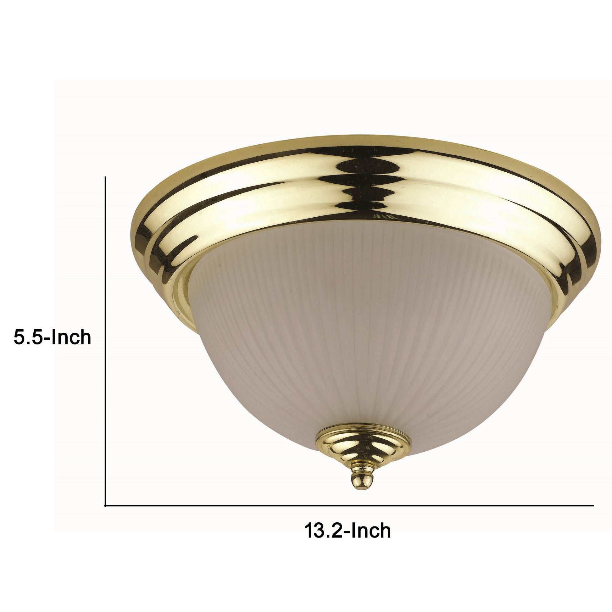 Designed to add timeless glamour to any modern bedroom or living room, this transitional style ceiling lamp features a sturdy metal frame in a stunning, polished brass finish, accented by a decorative final, a brass trim, and a glass dome shade that gives the piece a delicate and exquisite aesthetic of cool, contemporary class. Check out our Hoy collection for more color options.