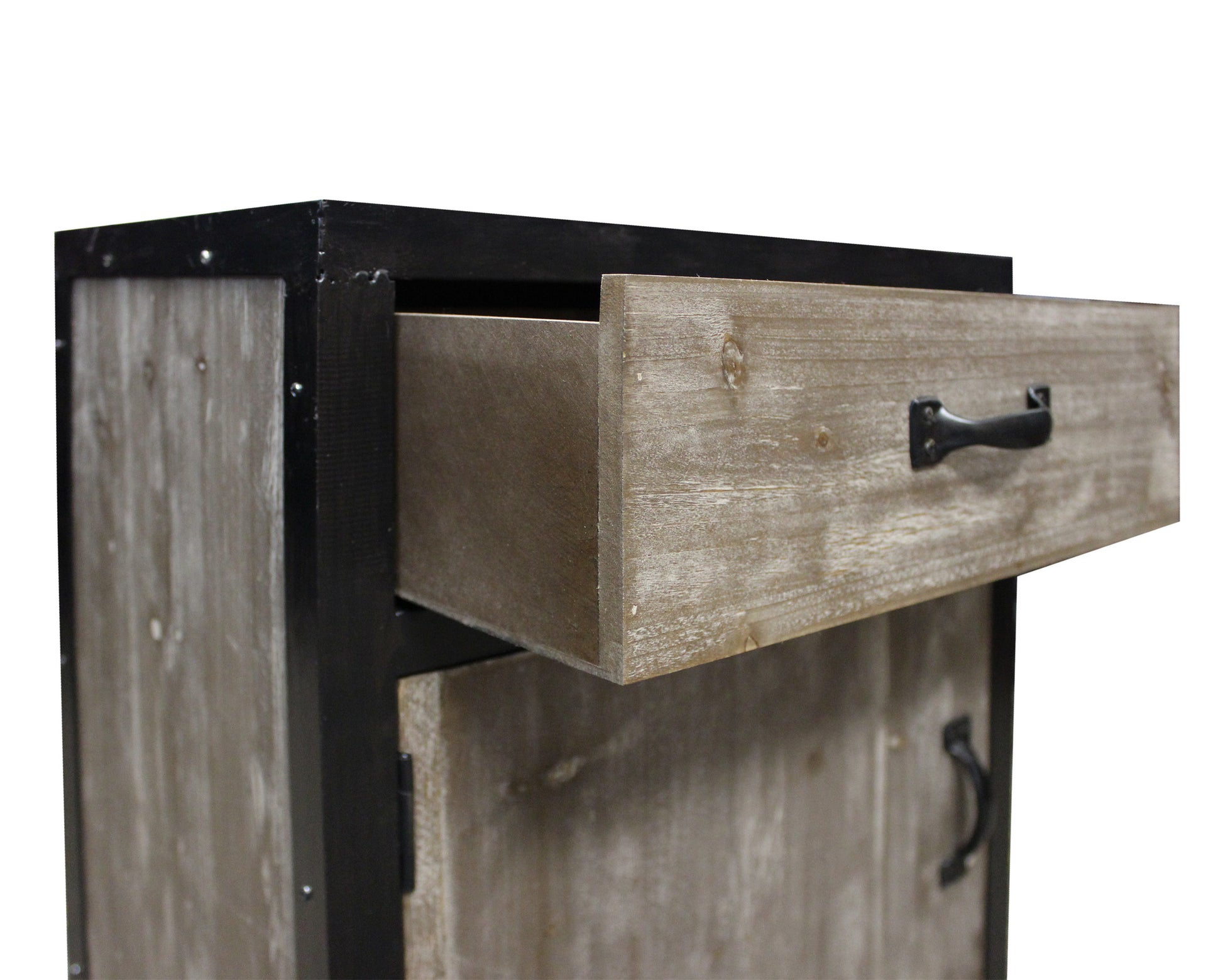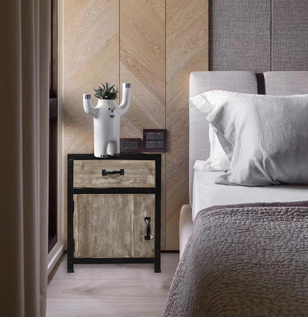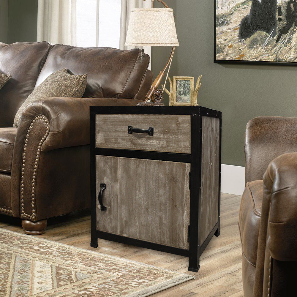 Versatile and Unique Industrial End Table with metal frame support. This charming End table combines elements of distressed wood and metalwork.