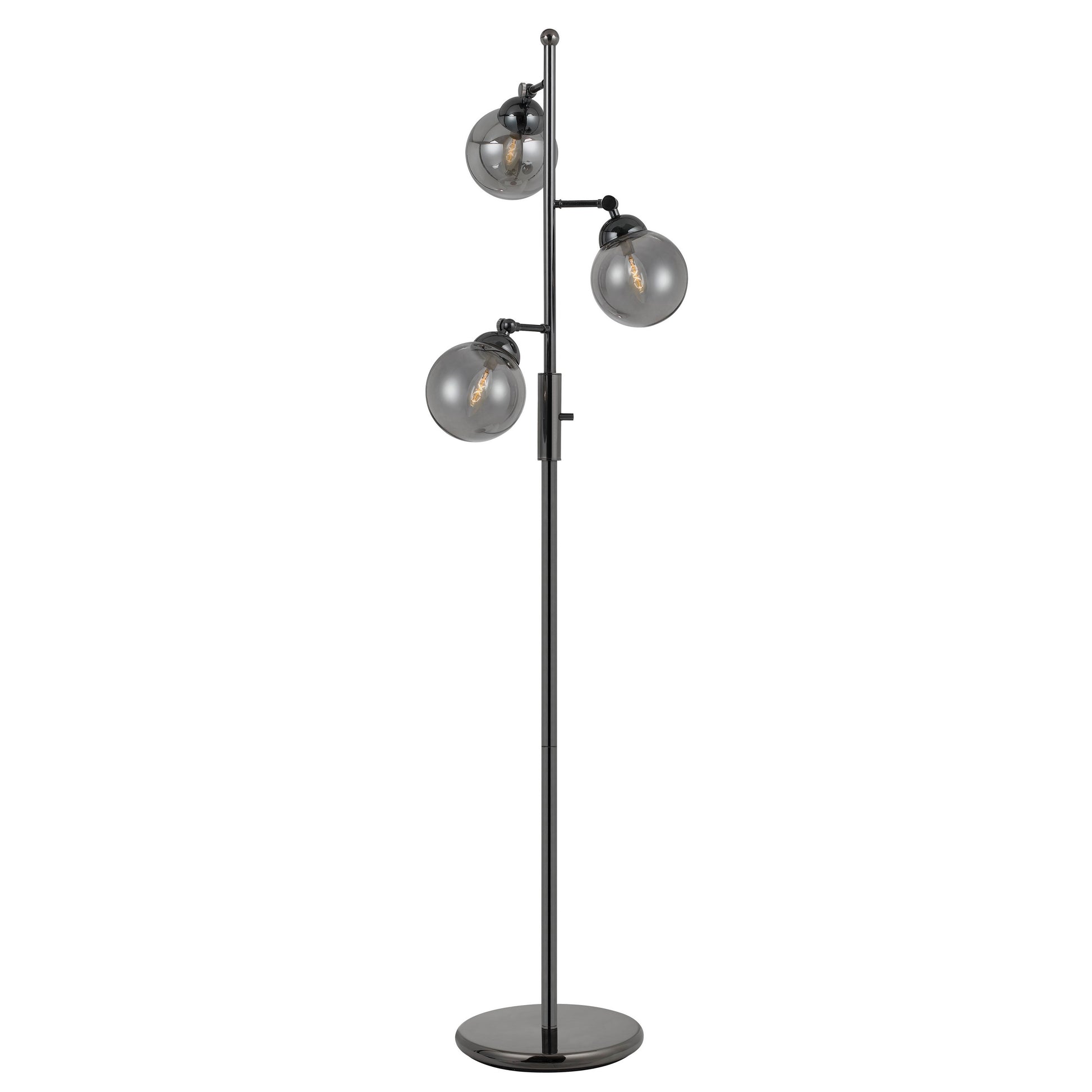Add an industrial touch to your living space with the inclusion of this sophisticated floor lamp. It features a metal constructed body in a black finish with three projected arms, incorporating glass ball shades and a 3 way switch for optimal intensity control. It is supported by a circular base, providing stability and durability.