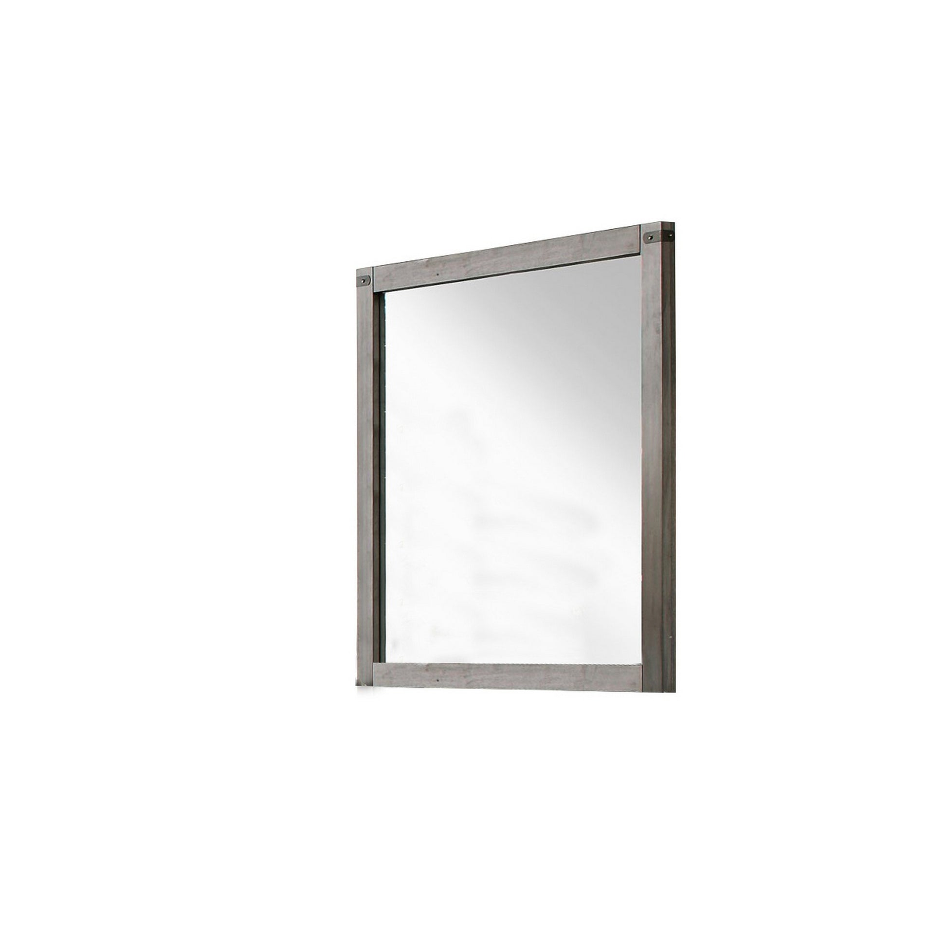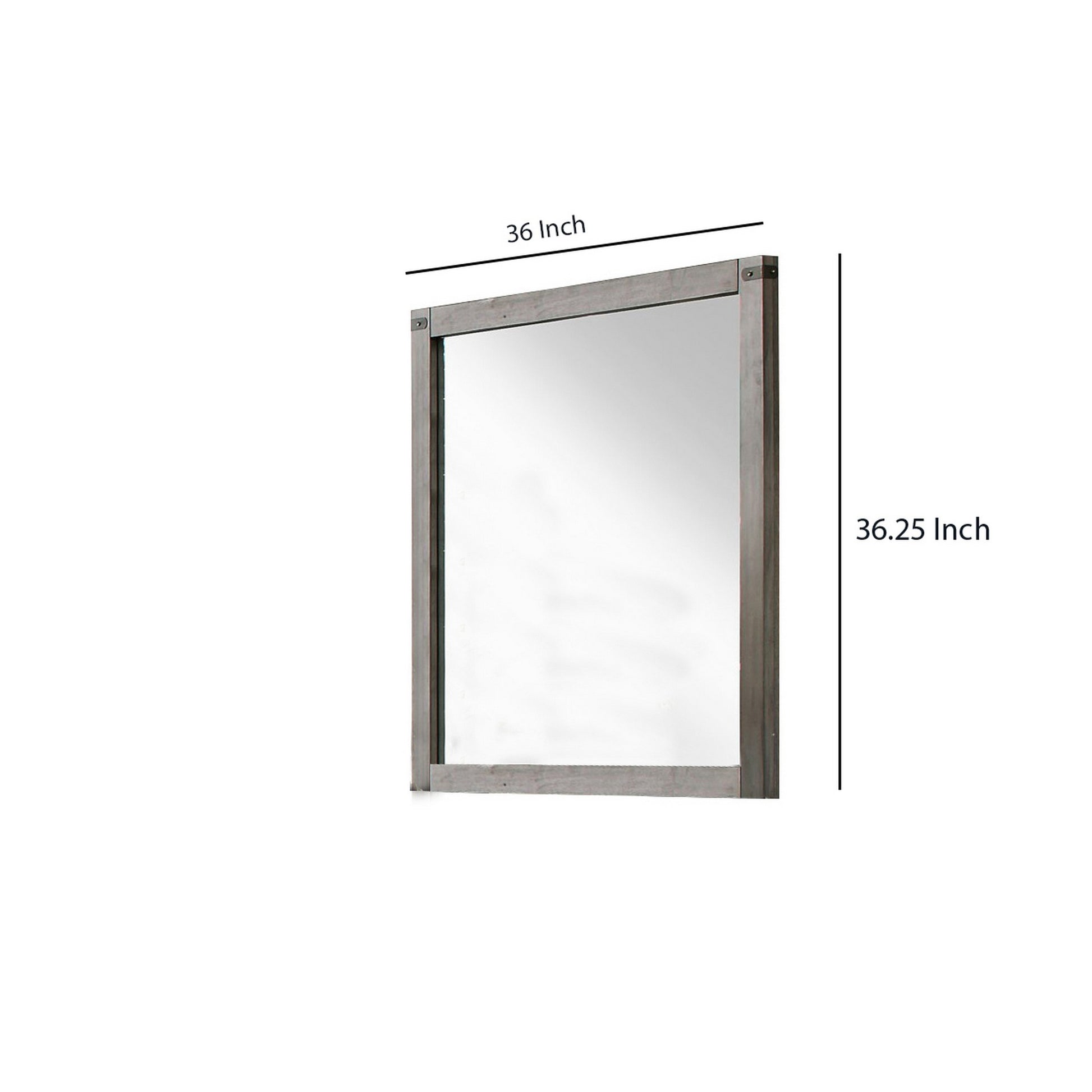 Create an illusion of light and space by bringing in this transitional style Mirror which comes with a square shape wooden encasing and showcases metal brackets with rivets on the frame. Incorporated with a mounting hardware on the back, it will be a perfect addition to your place.