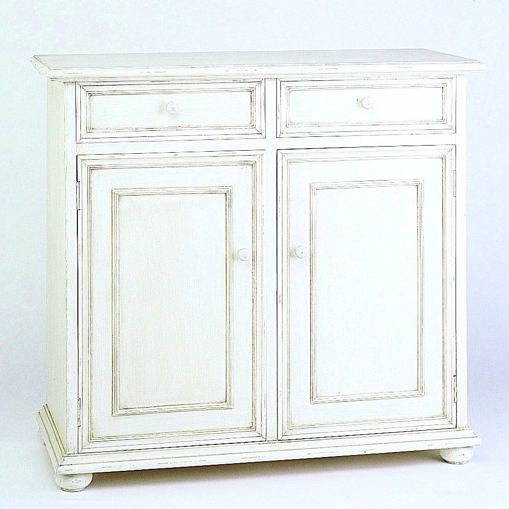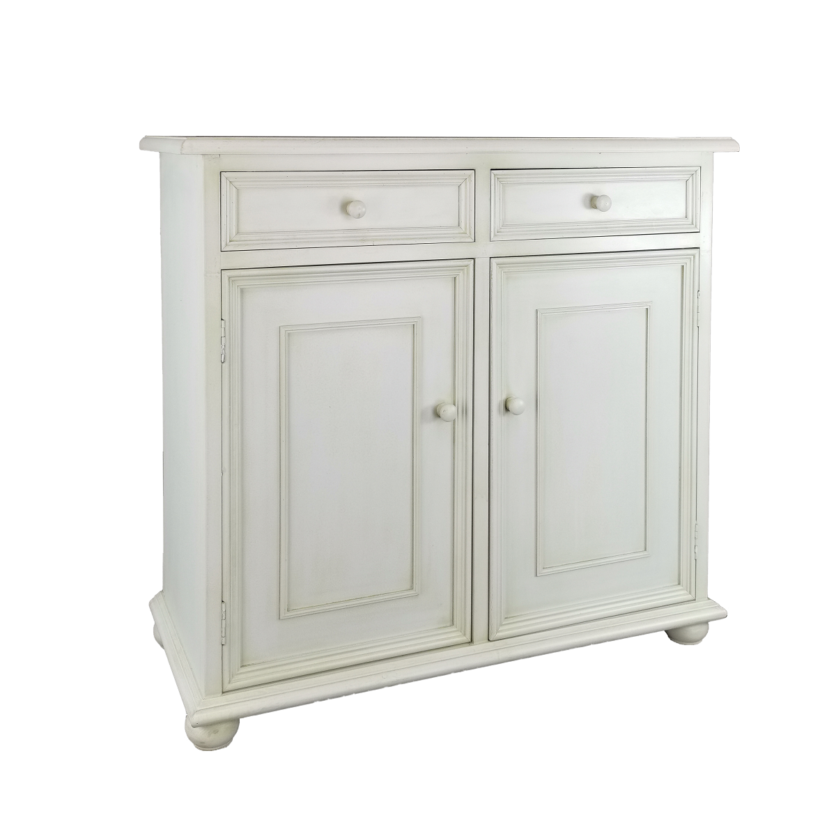 Looking for a great looking sturdy cabinet with plenty of storage? Look no further than this vintage style cabinet with two drawers and two doors with a shelf behind each. There is plenty of space to store extra dishes in a dining room or just to corral clutter in your living space. The thick table top is a perfect place to display your favorite home décor items like an accent lamp, a floral display or display family photos.