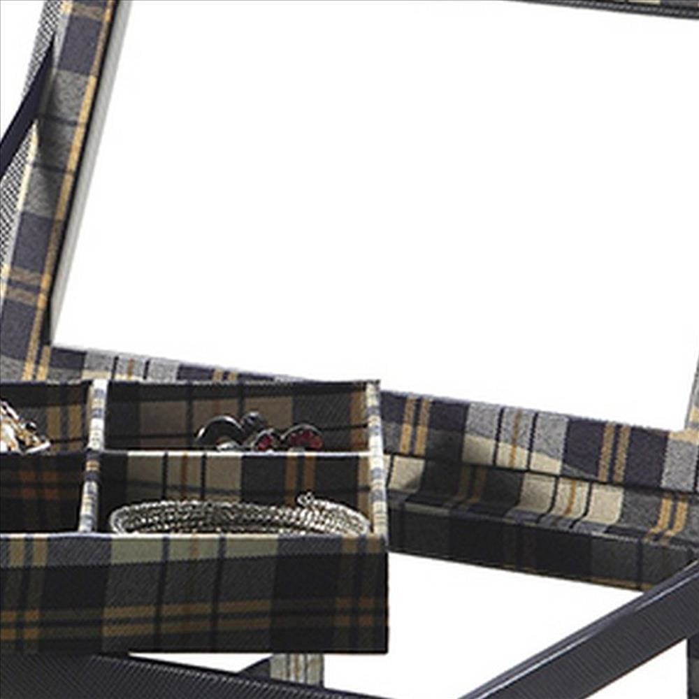 Keep all your jewelries and watches organized and safe while travelling with the inclusion of this jewelry case. Wrapped in leatherette frame, it has tempered glass lid on top. The 2 tier design with multiple slots and removable tartan cushions allows to place watches and jewelries conveniently.