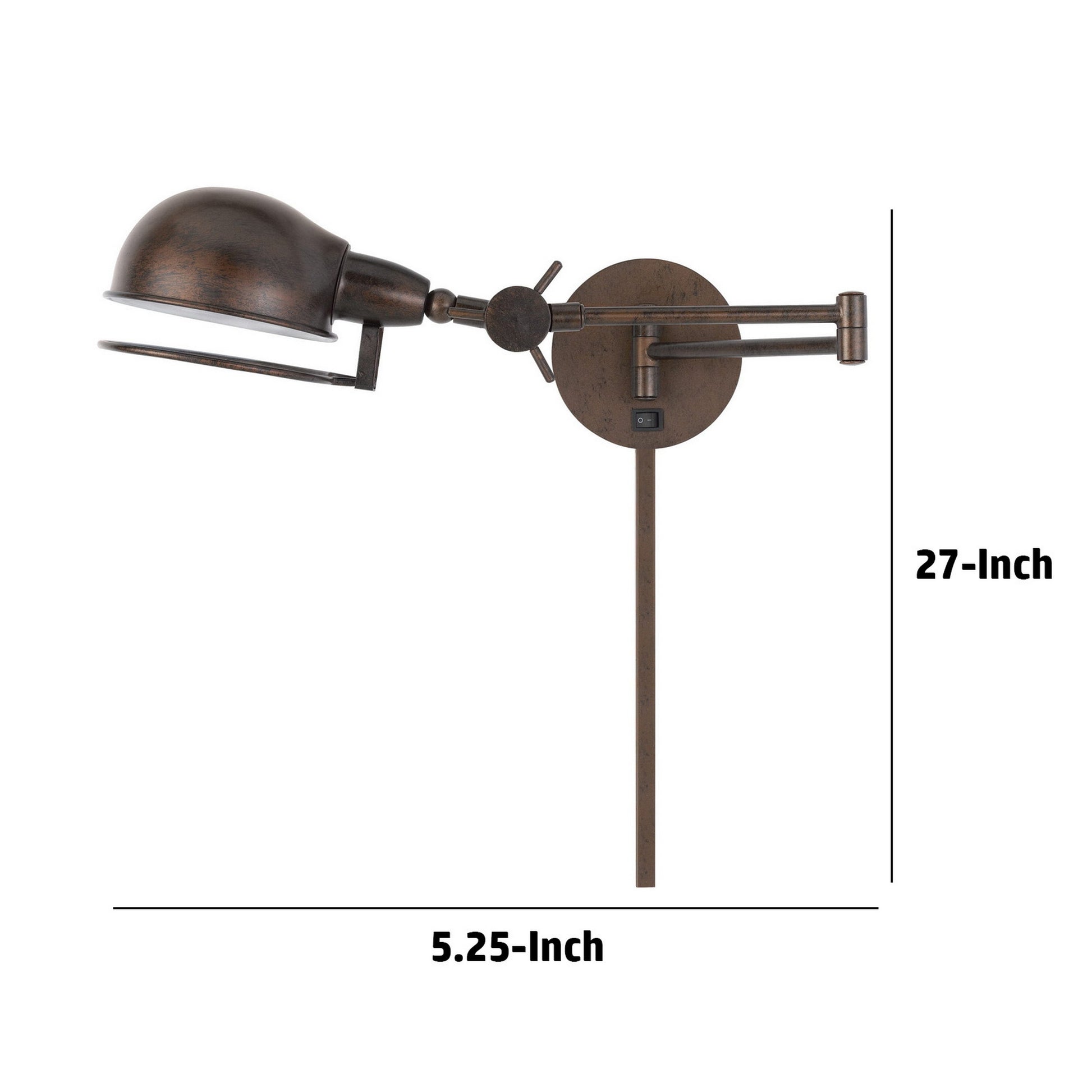 Bring a confident look to your living space with our vintage style industrial wall lamp in a rust brown finish. It features an adjustable metal shade and a swing arm for easily customizable positioning. The rocker on off switch makes it easy to use and its form factor brings a unique aesthetic that is hard to find in a wall lamp today. Check out our Kash collection for our other color option.