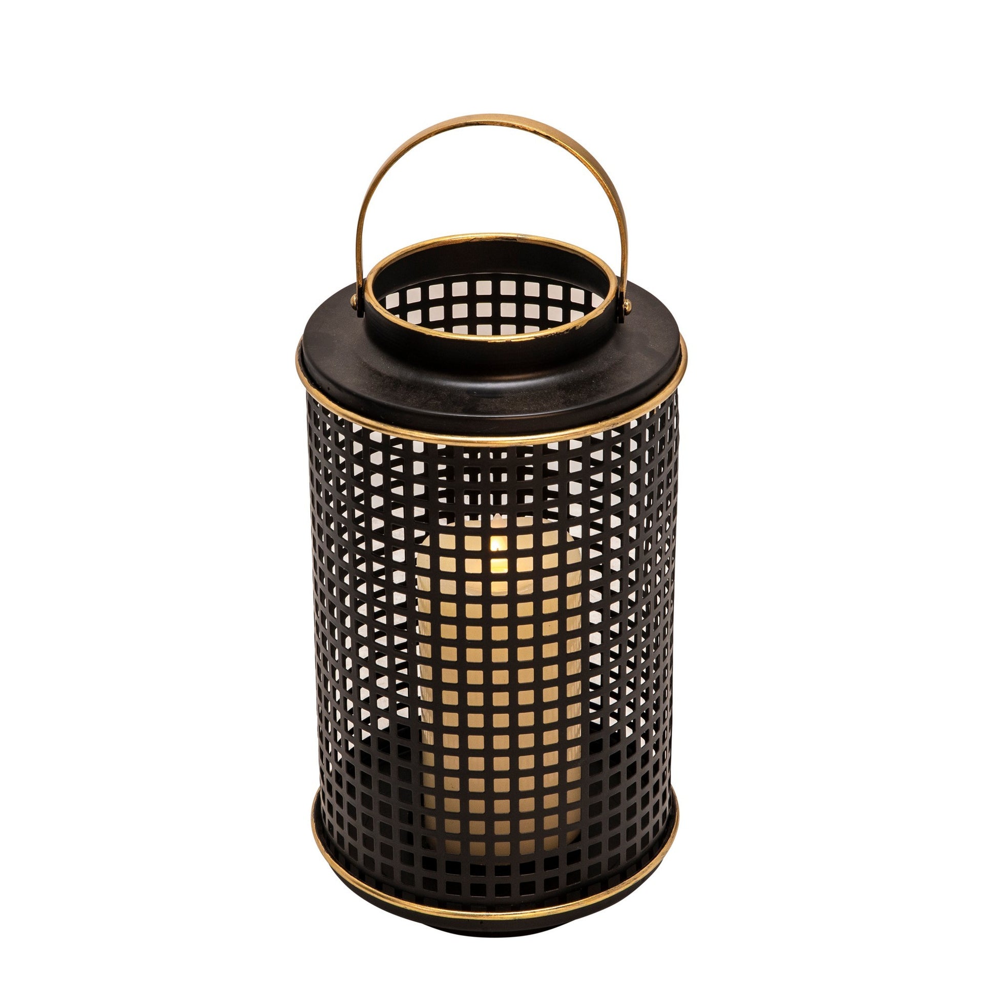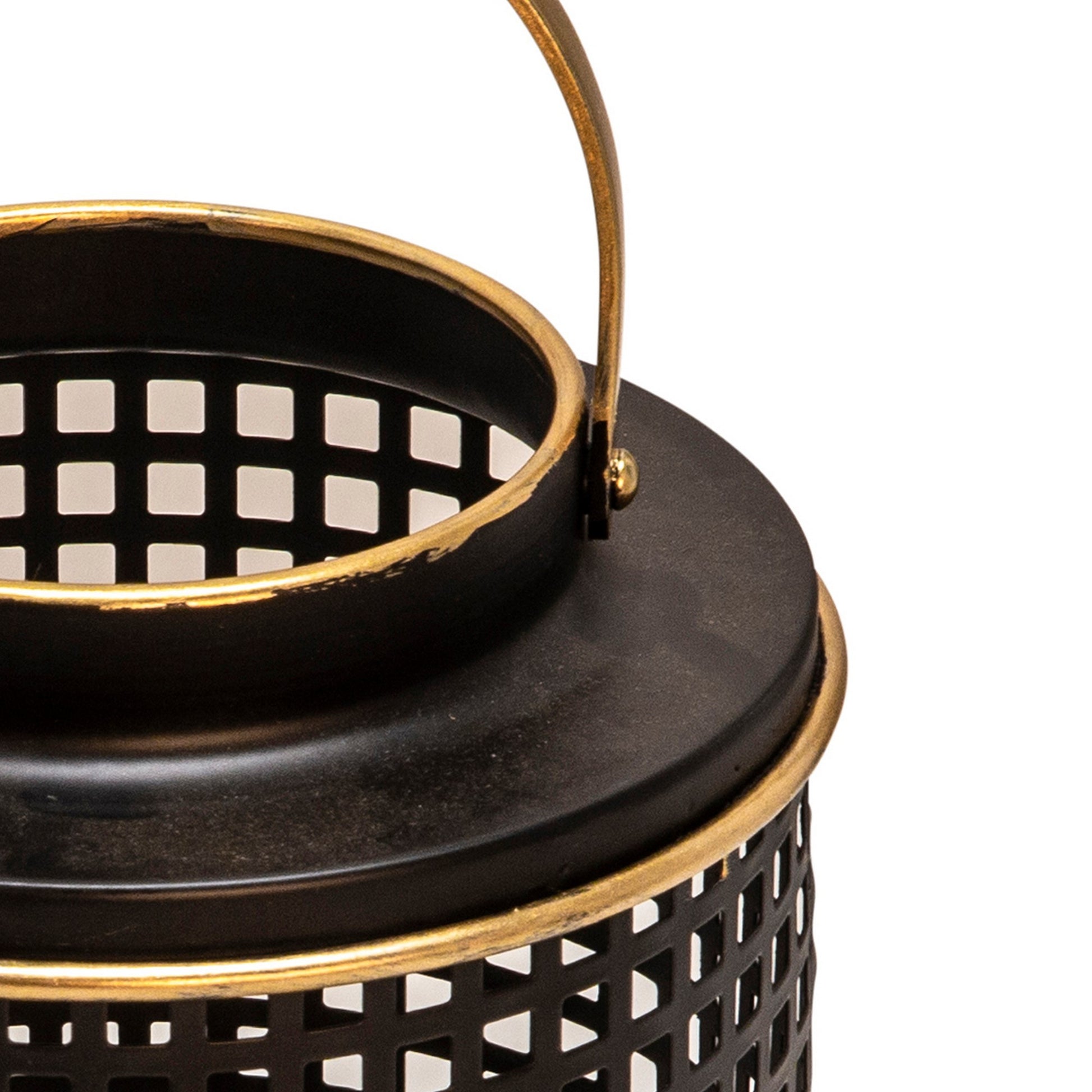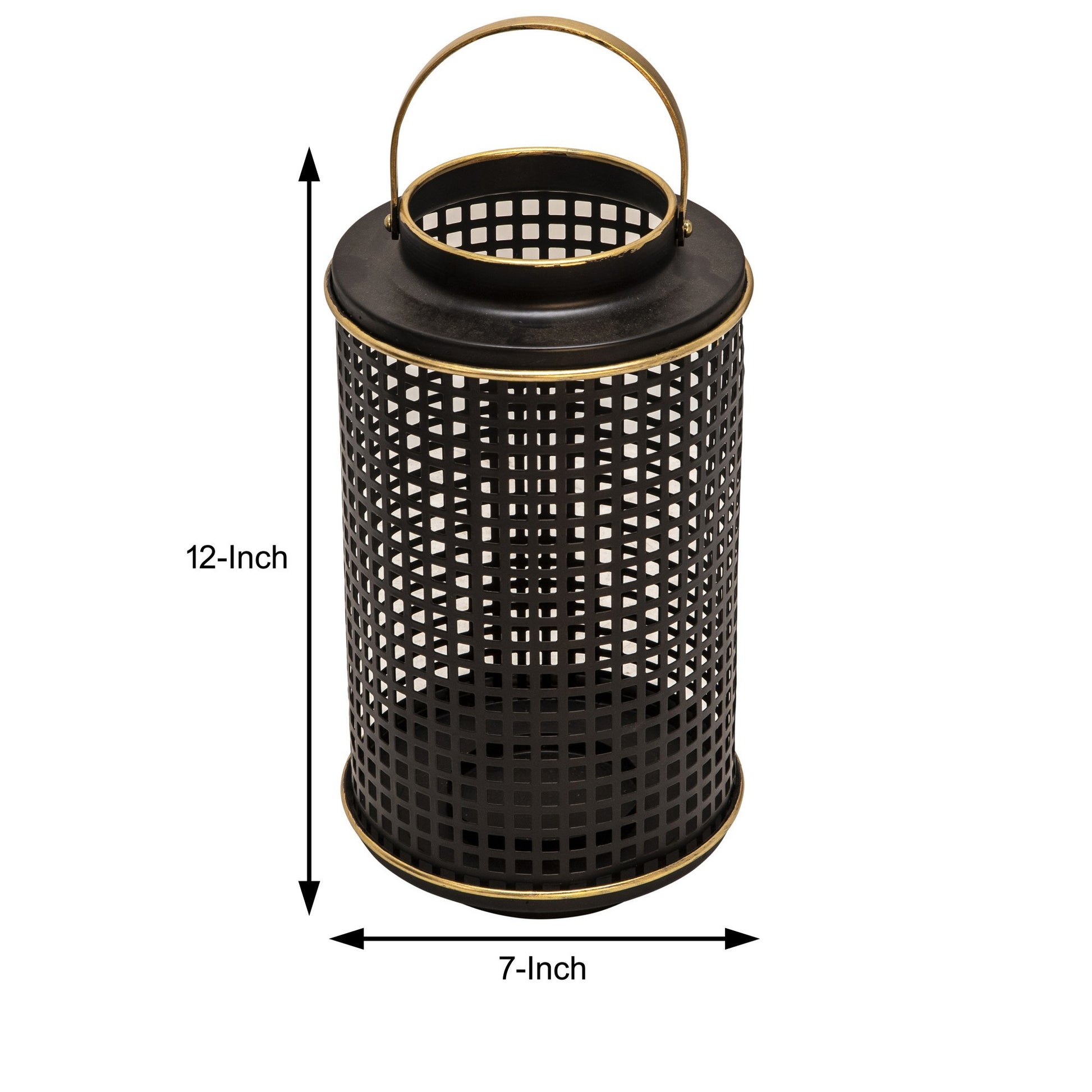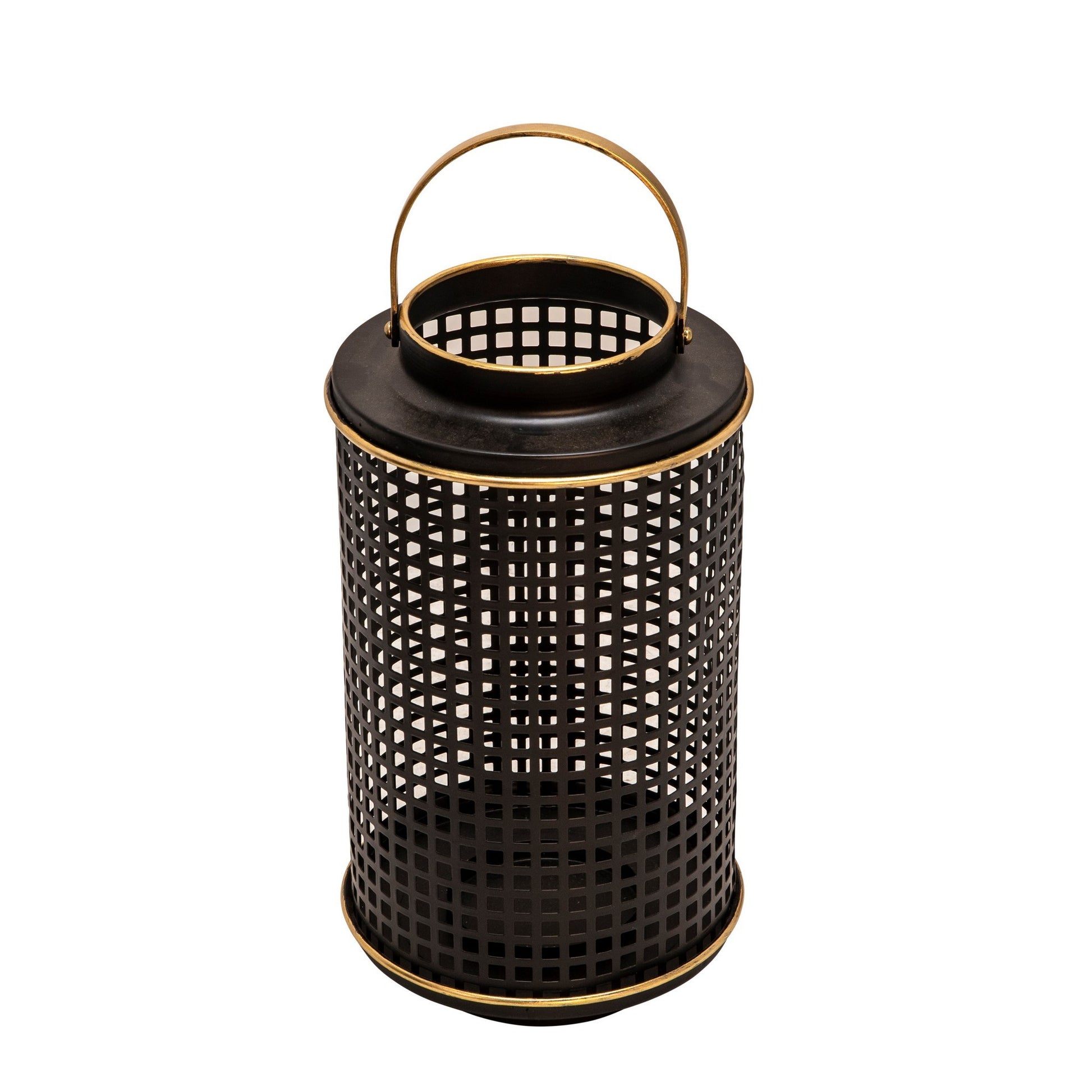 Radiate a warm, breathtaking glow throughout your home with this gorgeous 12 Inch metal candle holder made of high quality black coated metal and gold painted detailing. The minimalistic cylindrical grid frame brings unique style to any countertop or shelf, and can easily be hung on a hook in your entryway or in your backyard. Check out our Kate collection for matching items and size options.