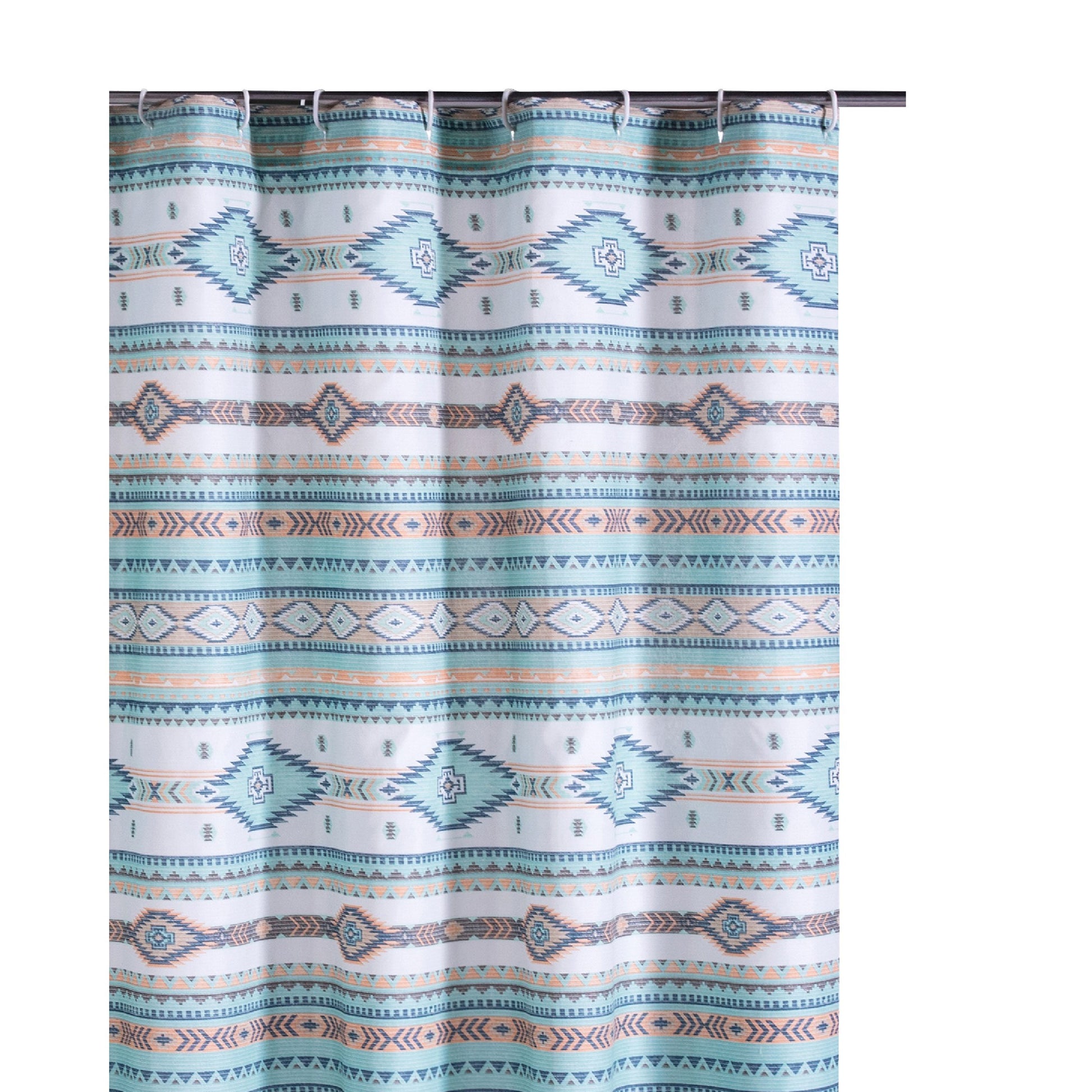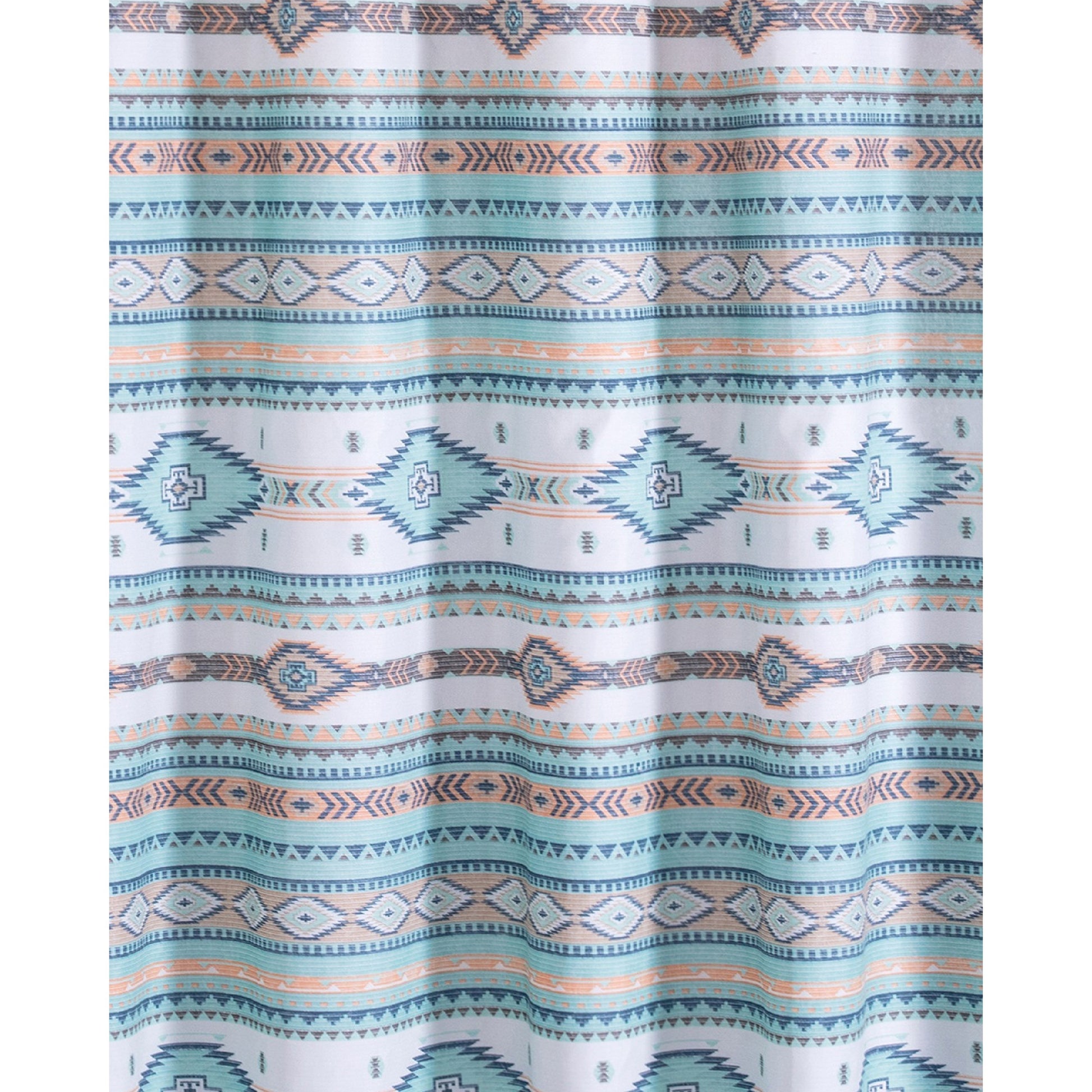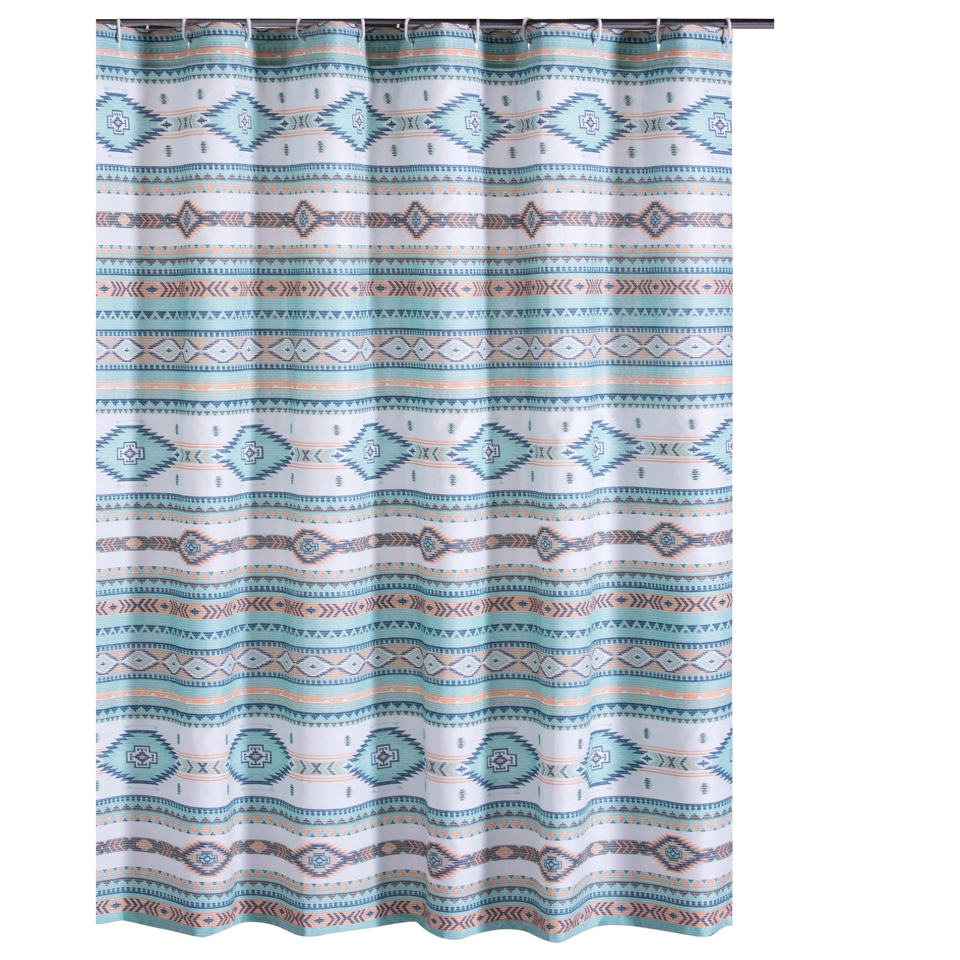 Kiev 72 Inch Shower Curtain Microfiber Blue Southwest Design Button Holes