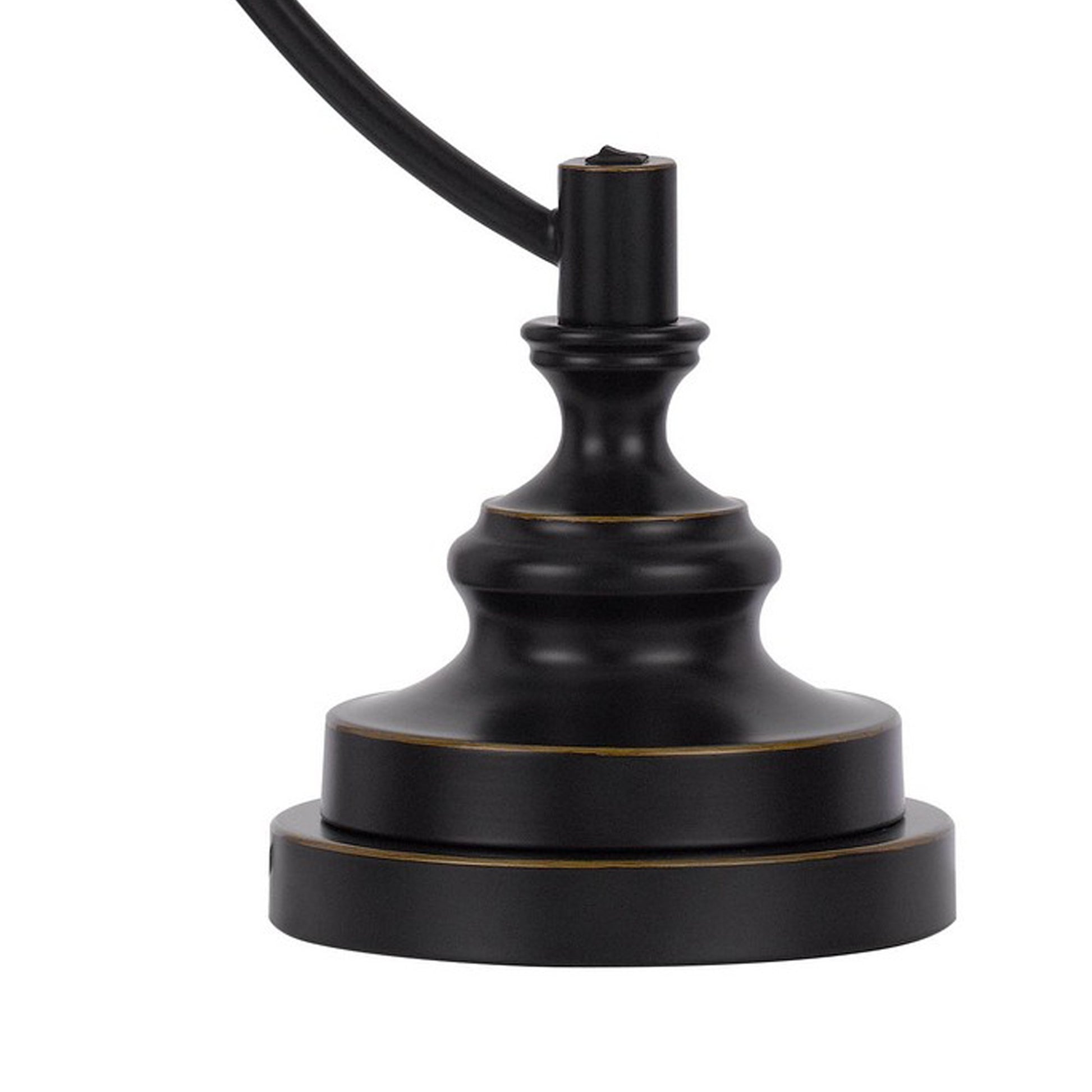 This gorgeous, downbridge table lamp is perfect for brightening up your home in style. The metal frame is done in a jet black finish, perfect for adding a striking contrast to your living room, home office, or reading room, and the curved arc holds a caged shade that adds to the charm of this accent piece. Check out our Kim collection for matching items.