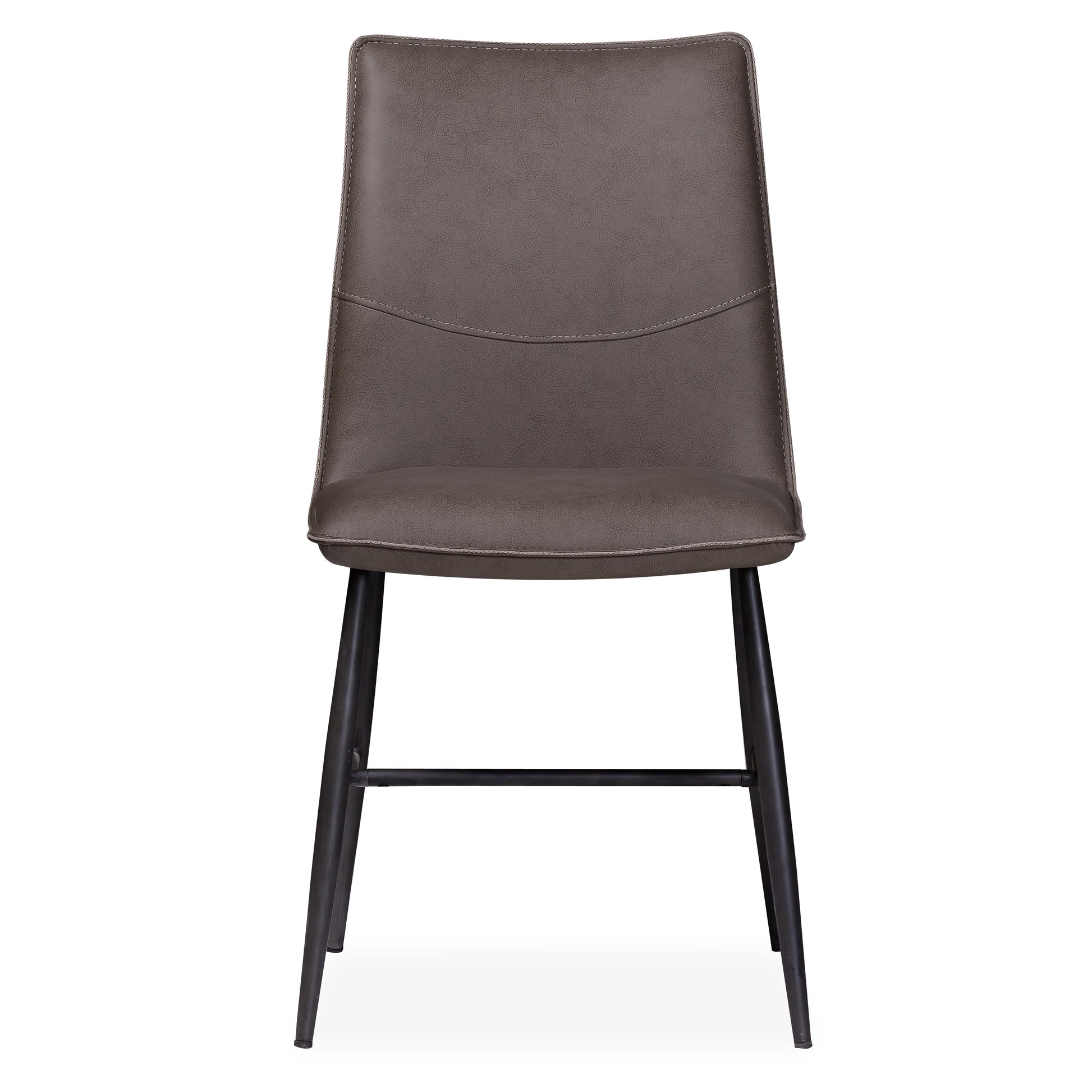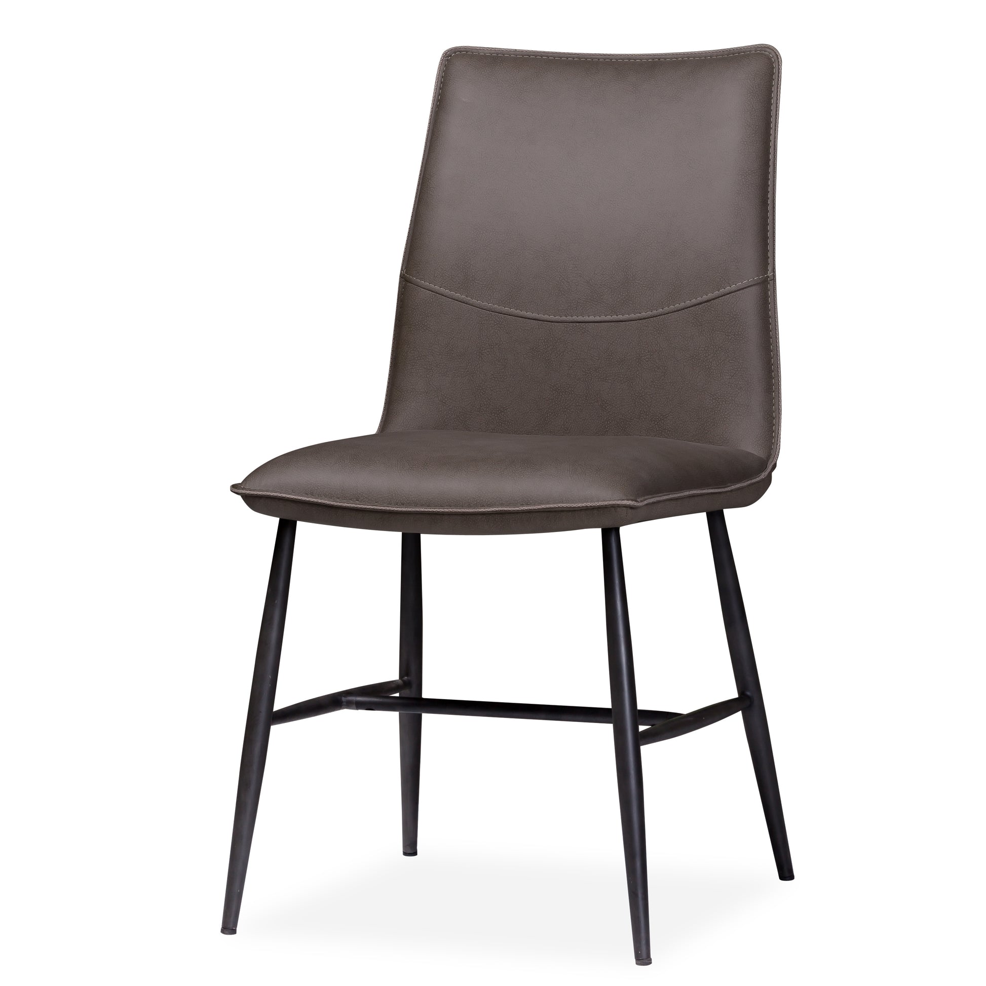 With a simple silhouette and comfortable cushioning, this Chair is a handsome seating option for your modern dining space. Resting atop tapering metal post legs with a stability stretcher for stylish support, this chair features a latte brown faux leather upholstery with decorative top stitching. Use this gorgeous side chair to finish off your dining set or as a stylish accent piece for a living room or bedroom. Note: Other featured items in the image except this chair are sold separately.