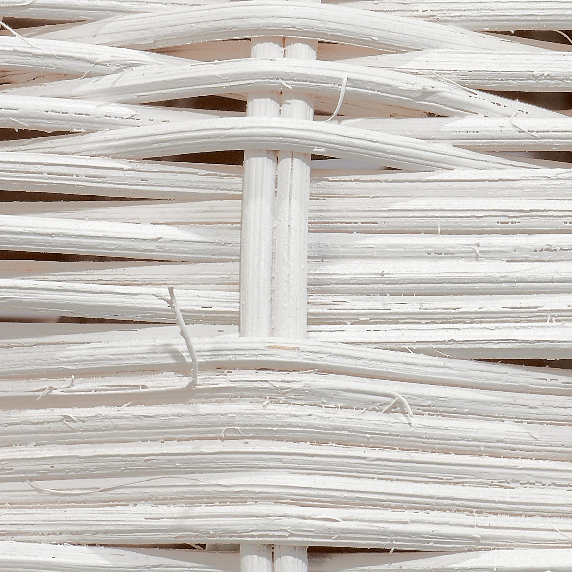 Bring a sense of coastal charm and transitional style to any entryway console table or bedroom nightstand with this beautiful and geometrically patterned white woven ratten lamp. Supported on a center aluminum rod and coupled with a striking white tapered shade, this piece emanates tranquility and Bohemian style. Check out our Lee collection for matching items.