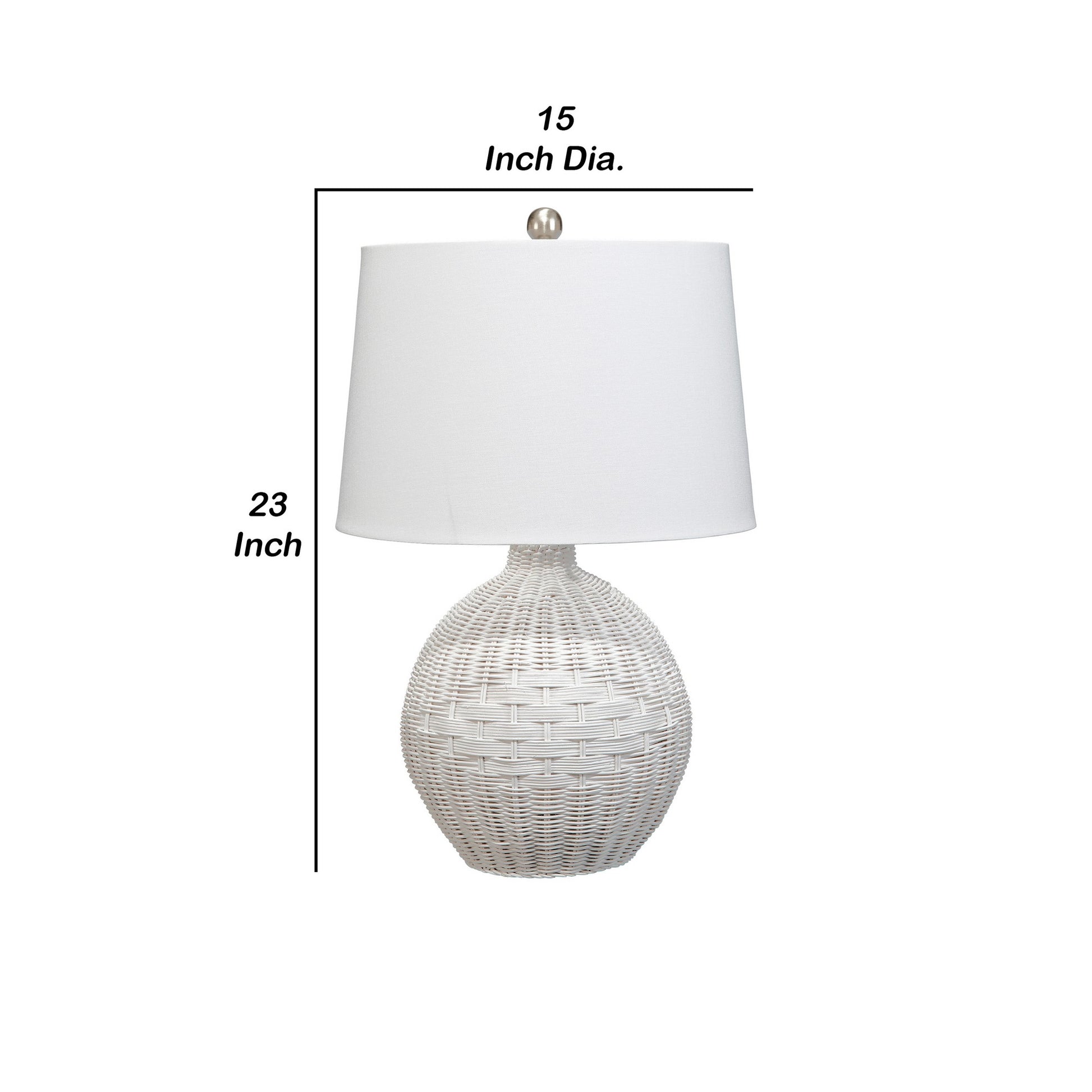 Lee 23 Inch Table Lamp Rattan Woven Inverted Tapered White Shade White