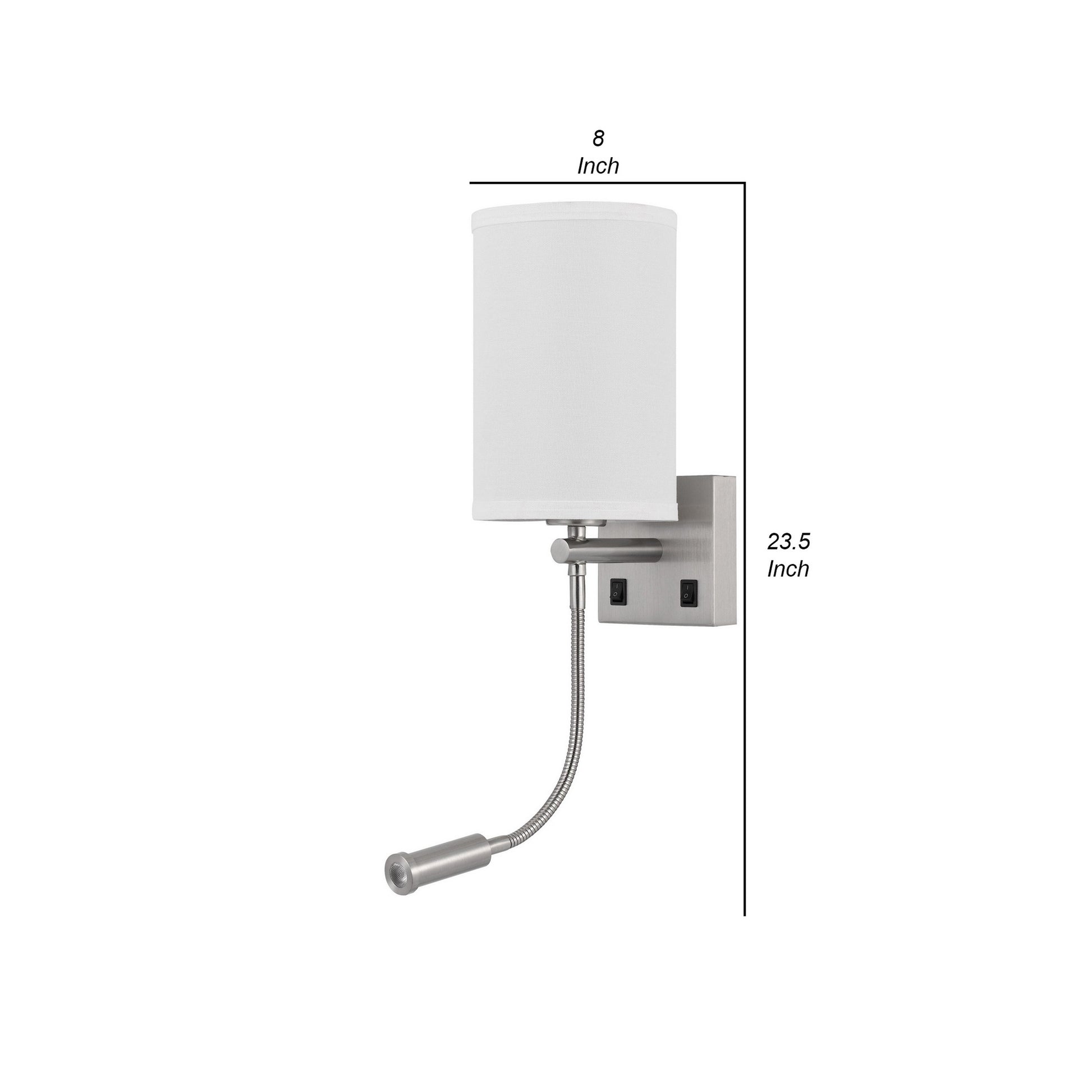 Liam 25 Inch Modern Wall Lamp Hardback Fabric Shade 1 Led Metal Silver