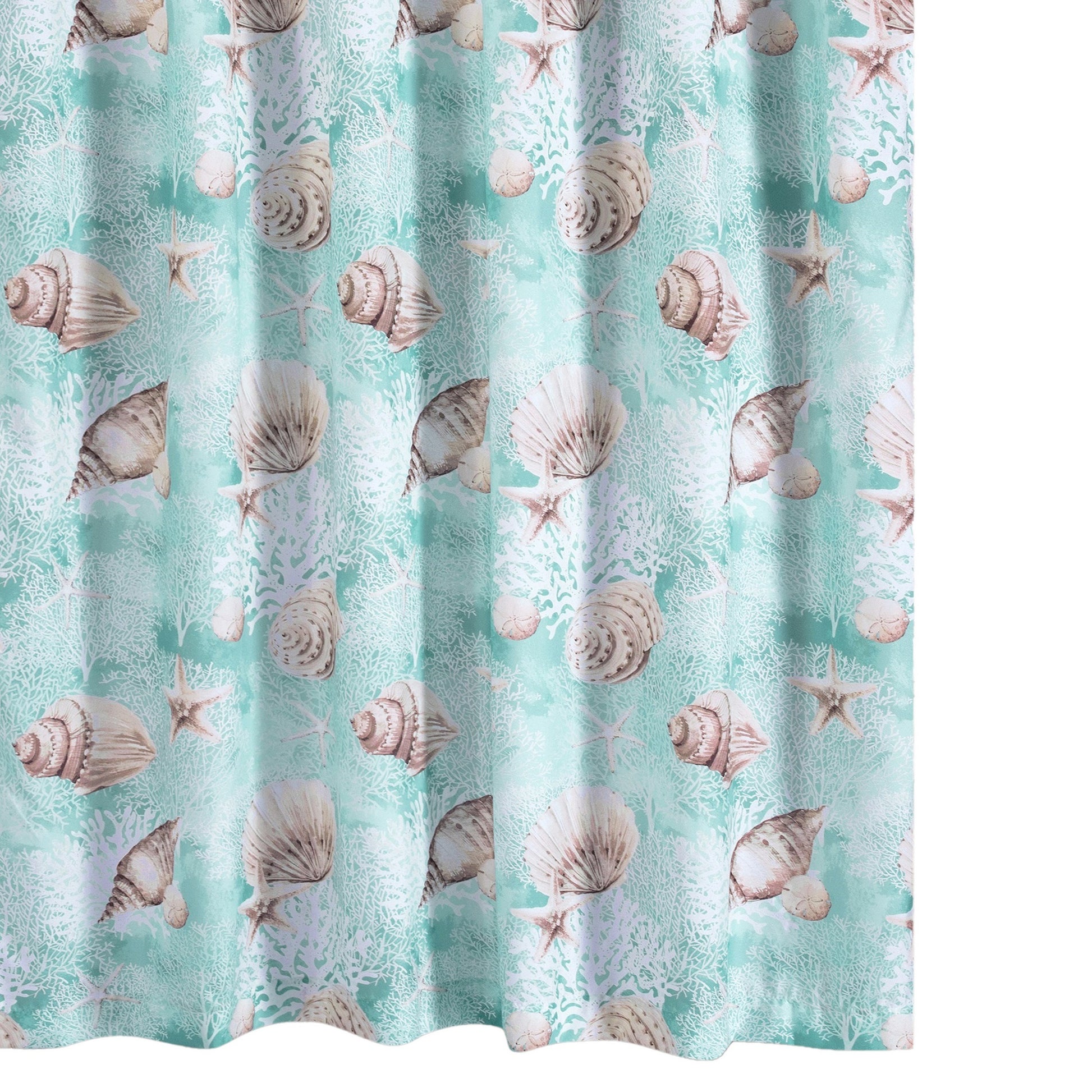 Bring a coastal aesthetic to your hygeine routine with this stylish and beautiful shower curtain, perfect for both stylish appeal and perfect privacy. It comes crafted from microfiber with conch shell printing and it pairs wonderfully with any shower liner to create a restroom sanctuary so perfectly coastal that it seems to swell with the sea. Check out our Cea collection for matching items.