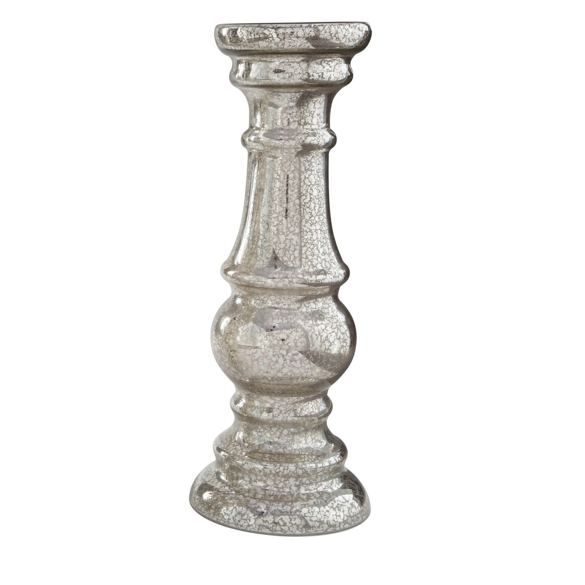 Emblaze your existing decor setting by bringing in this contemporary style inspired Pillar Candleholder, which comes with elegant turned design and is supported on pedestal base. Crafted from mercury glass, it is accented with silver finish.