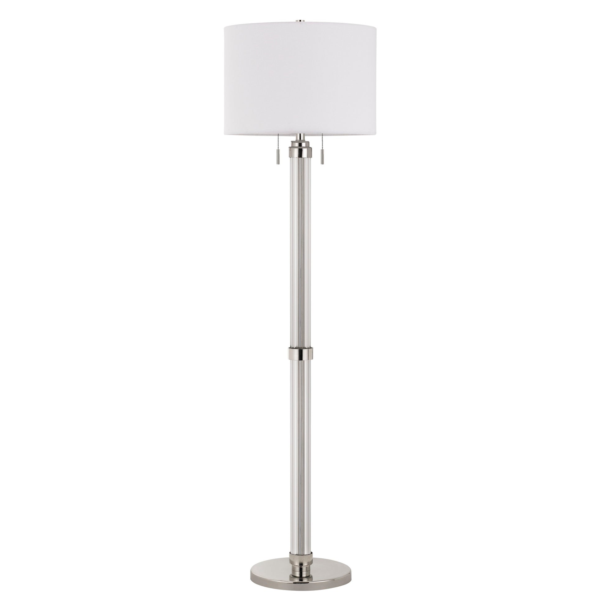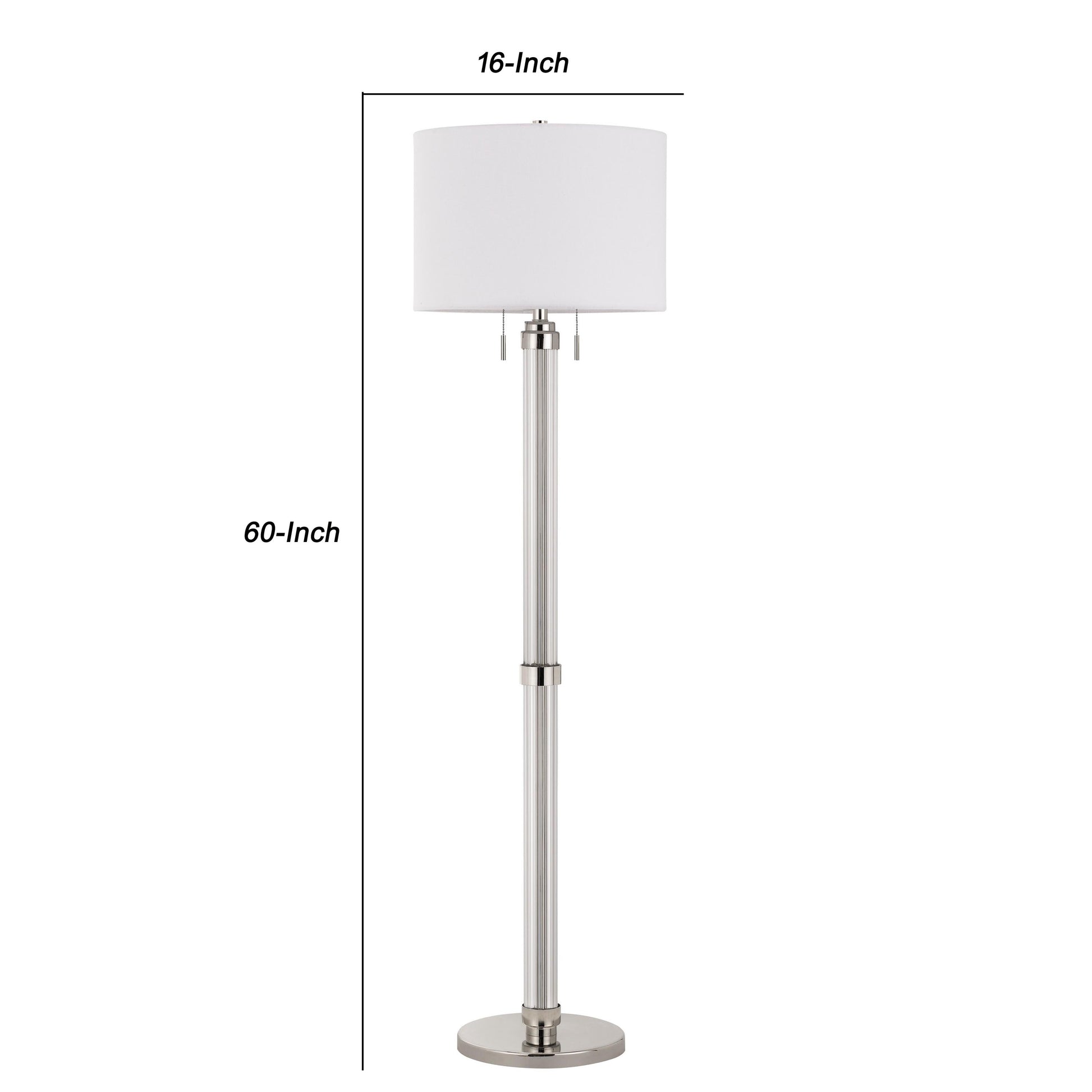 Improve the luxury and beauty of your home with the inclusion of this sophisticated floor lamp. It features a tubular metal and acrylic body, incorporating a fabric drum shade and pull chain switches for seamless control. It is supported by a circular base, providing stability and durability.