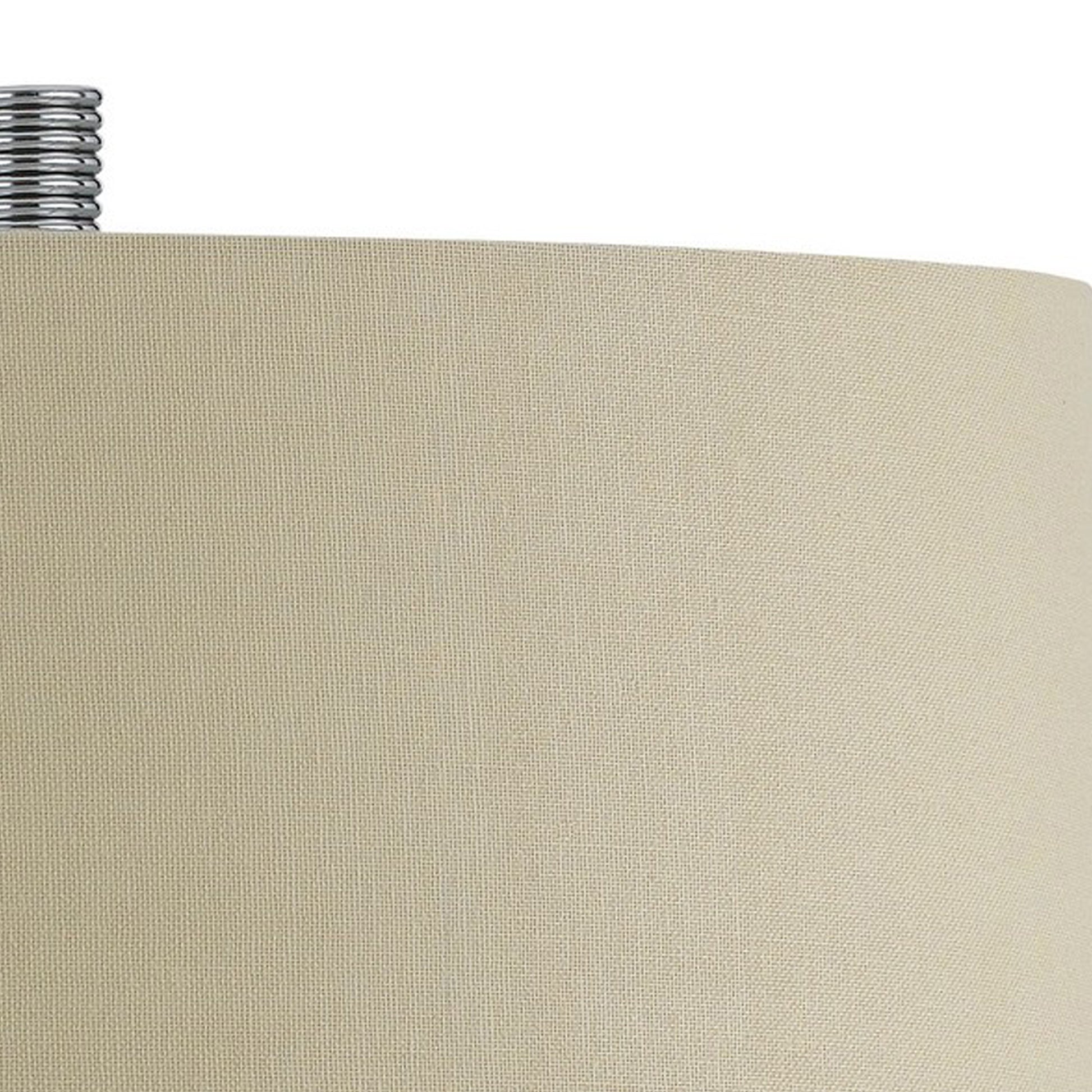 With its eye catching design, this table lamp is a must have in every home. It comes across as quite sturdy looking as it perfectly replicates corkscrew design at the base accented in chrome finish. The fabric tapered shade completes the overall look. A19 bulb base adds to the functionality. It requires 2 bulbs of 60W each to create the much needed illumination.