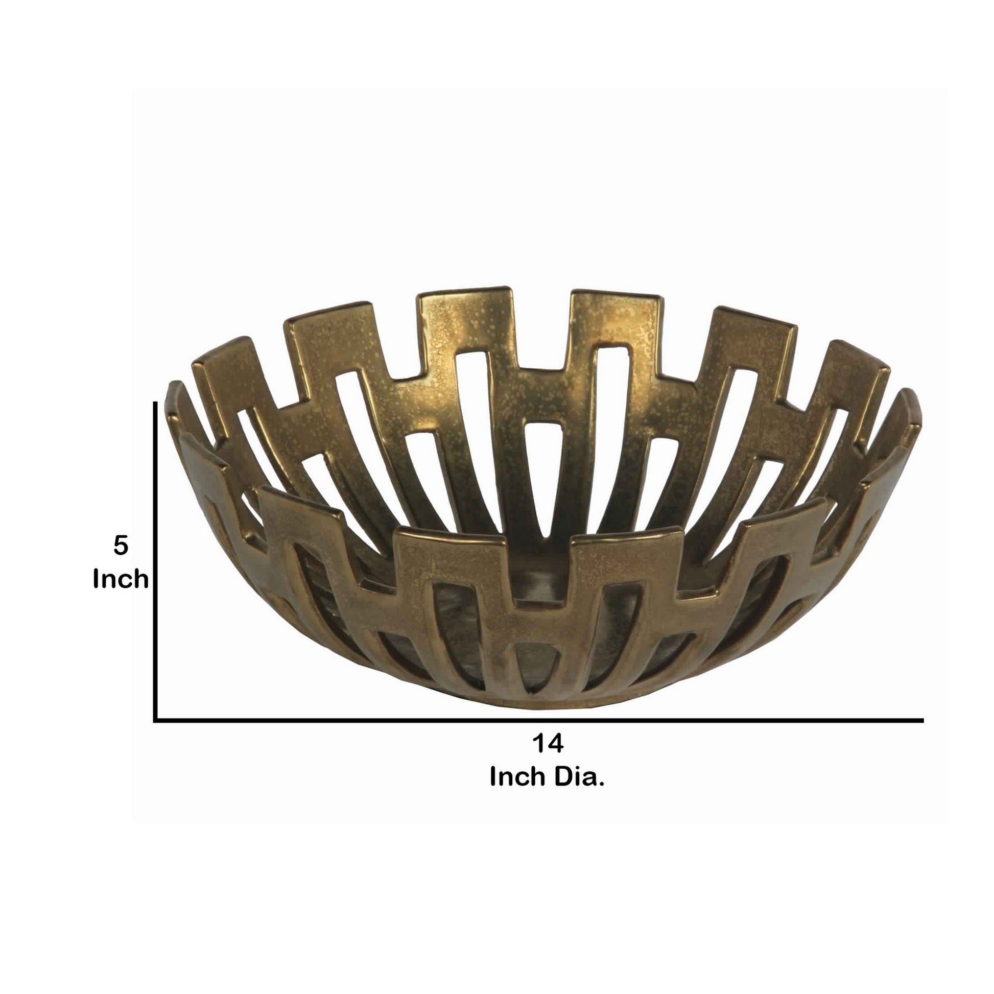 Upgrade your existing home decor by displaying articles on this amazing Decorative Bowl. Featuring a sturdy metal construction in glossy gold finish, it showcases a geometric design. Being versatile, it finds place in any living space.