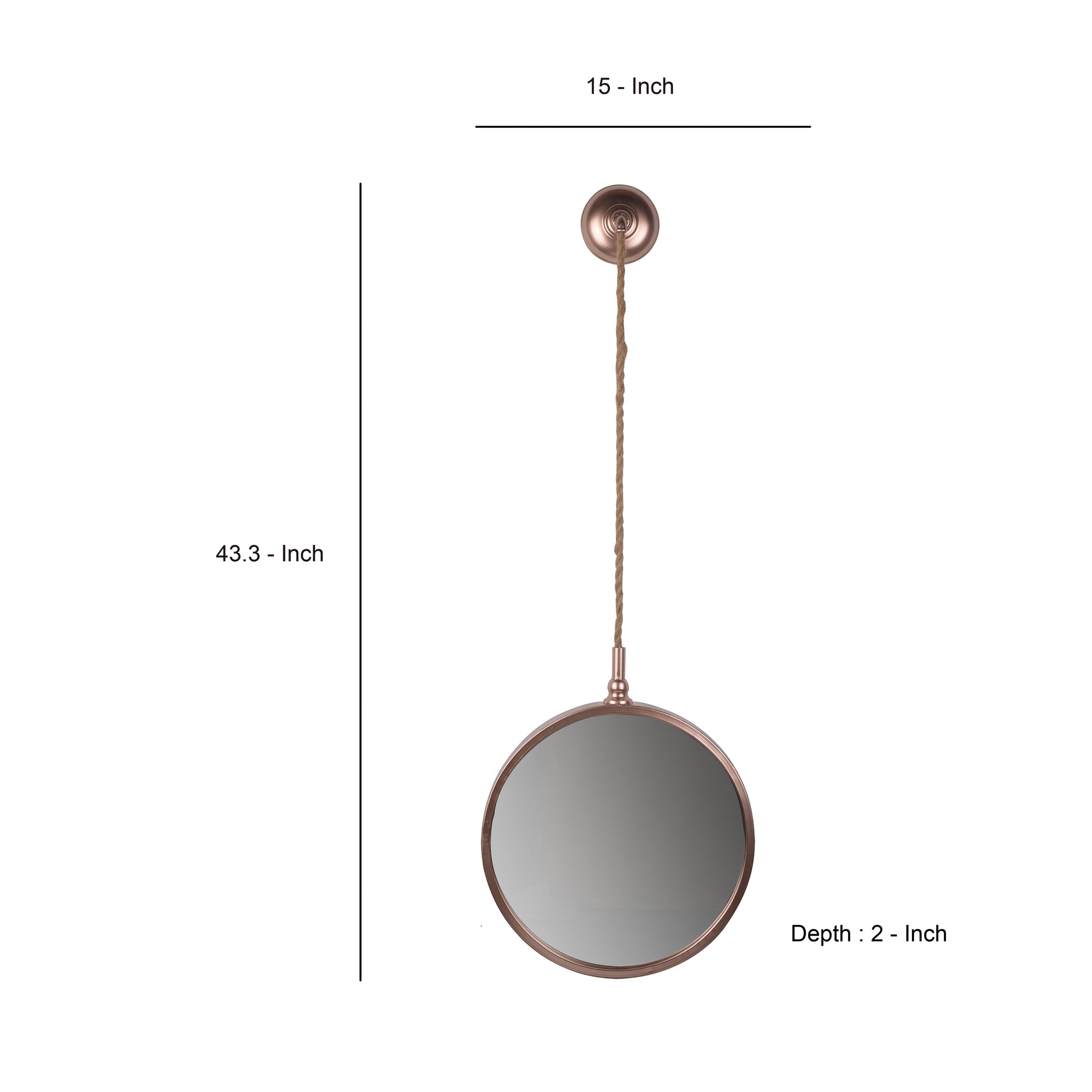 Metal Frame Round Wall Mirror With Attached Rope Hanging Medium Copper