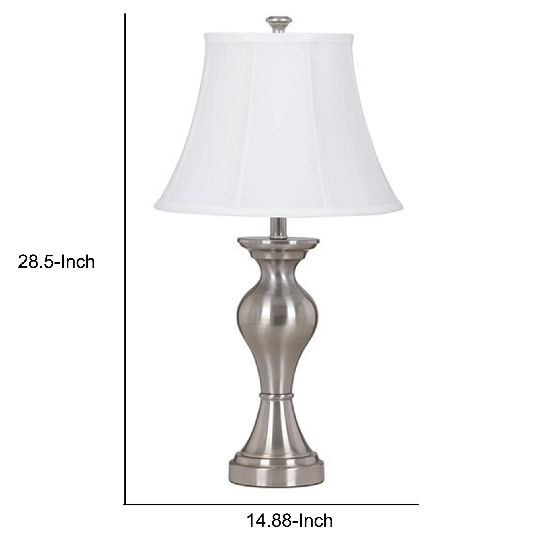 Metal Frame Table Lamp with Fabric Shade Set of 2 White and Silver