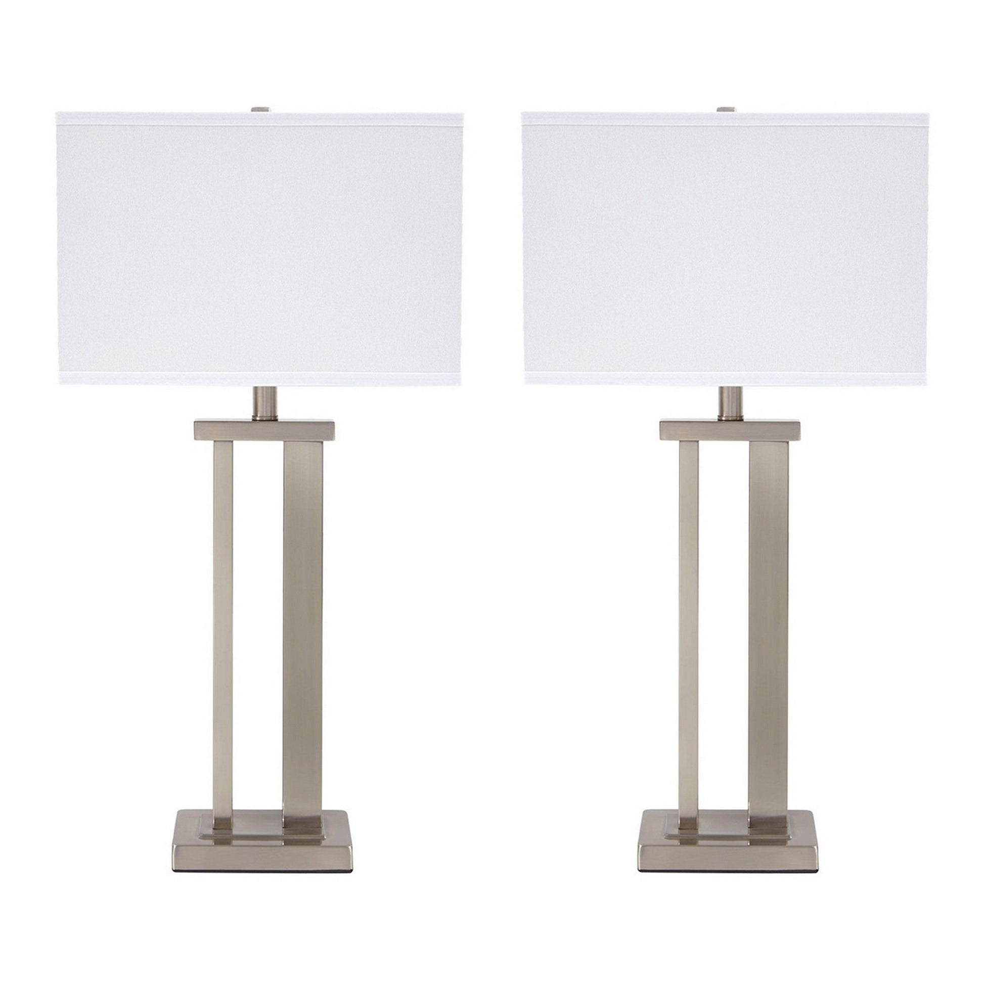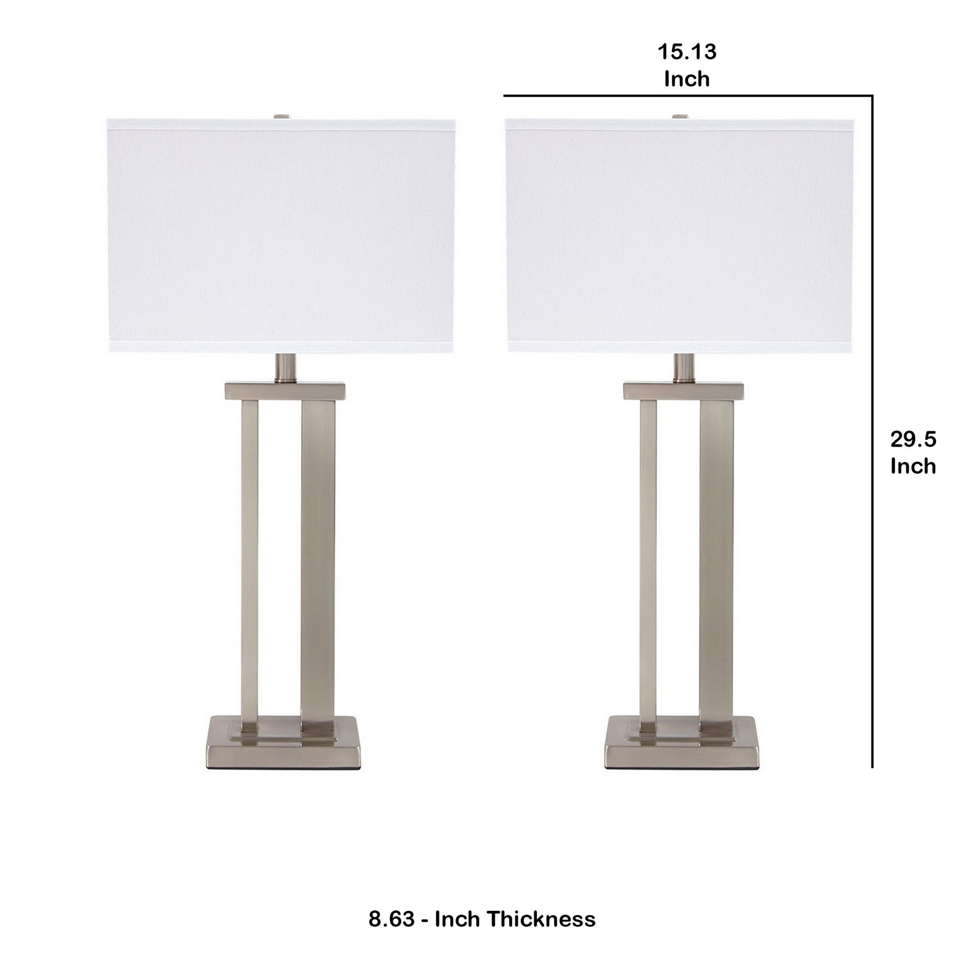 Metal Frame Table Lamp with Hardback Shade Set of 2 White and Silver