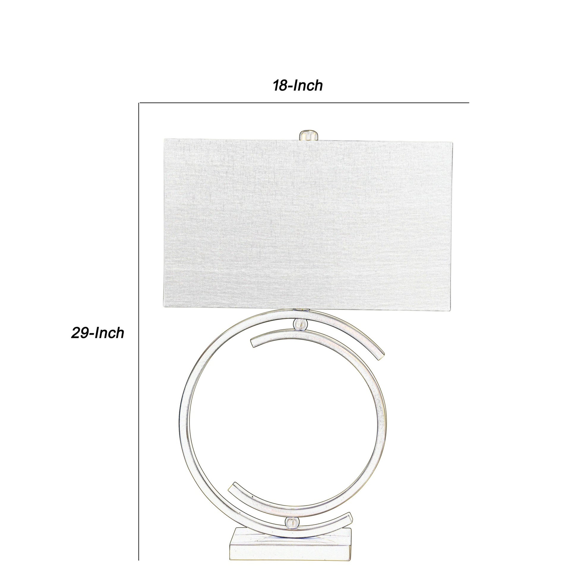Boost your living room decor with the inclusion of this sturdy metal constructed table lamp featuring contemporary style. Showcasing concentric semicircle design support with block base which bestows a distinct look to it. The rectangular shaped shade completes the look.