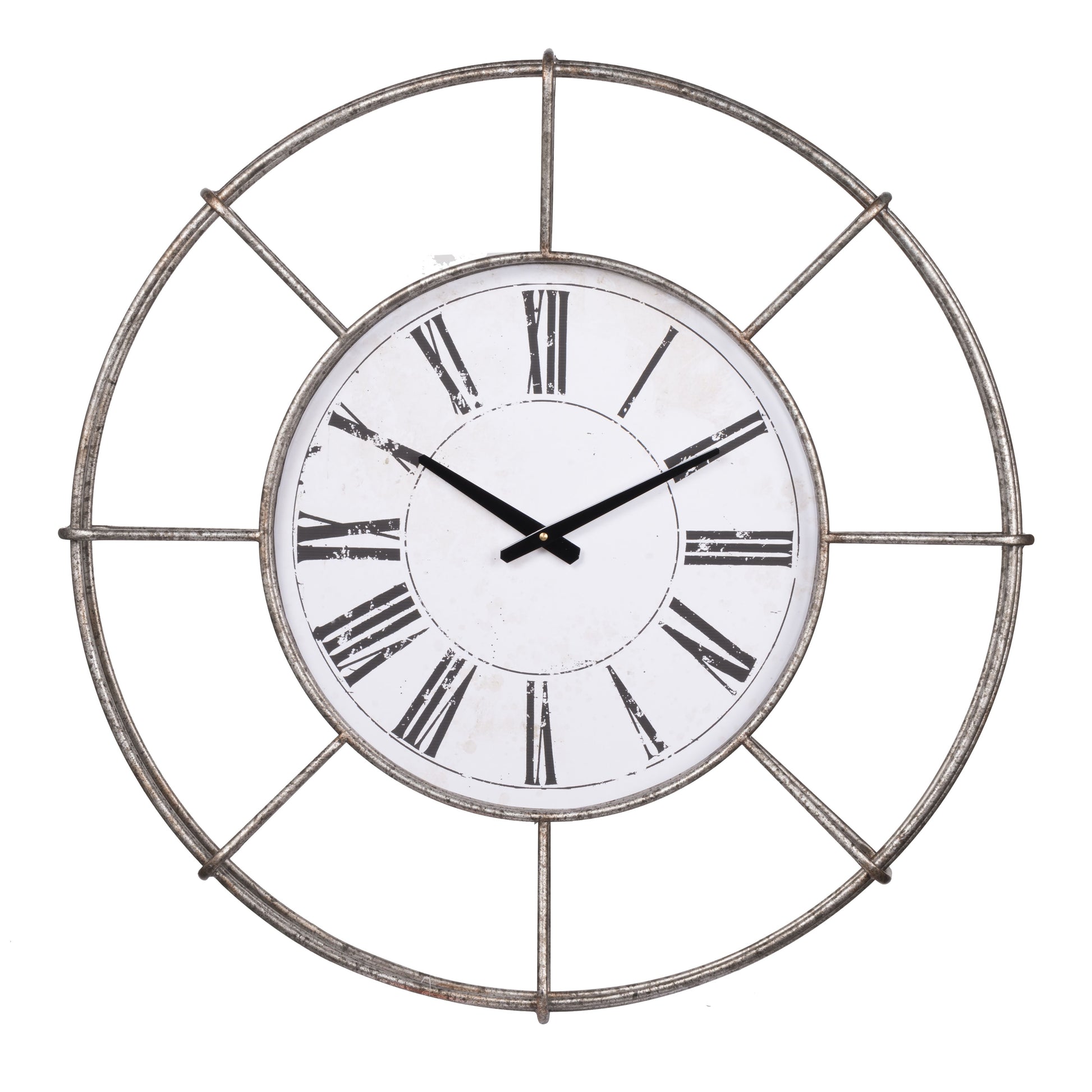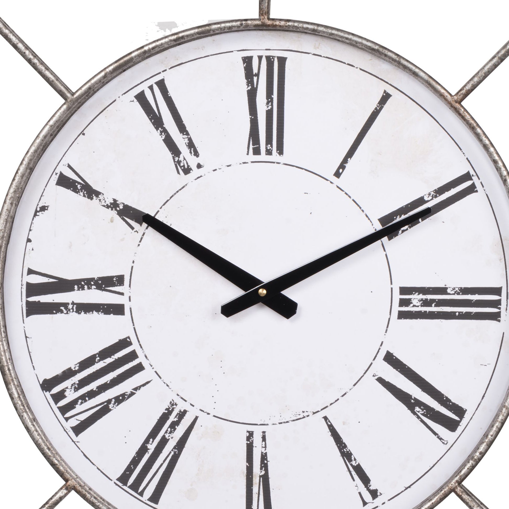 Metal Wall Clock With Circle Dial And Roman Numbers Silver And White