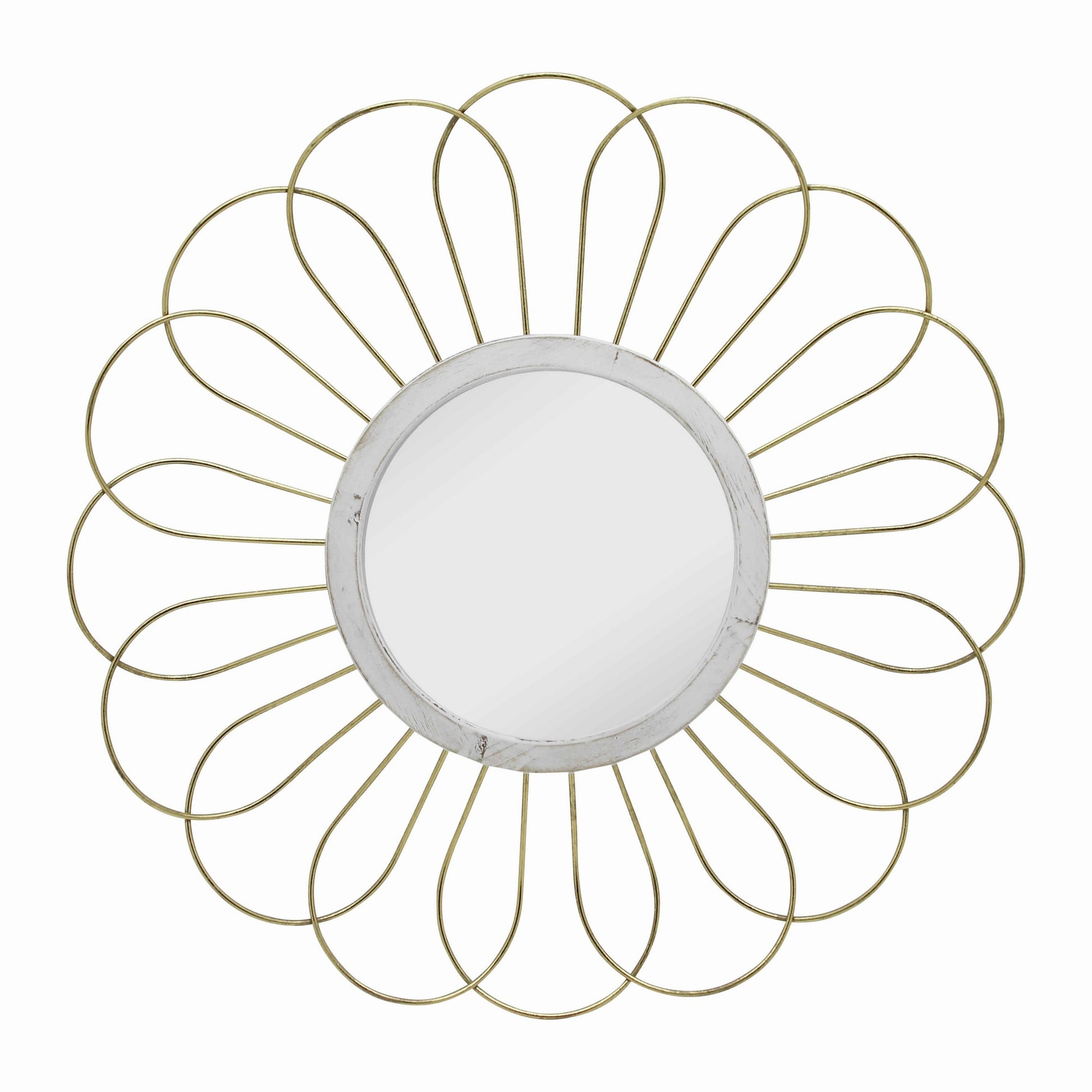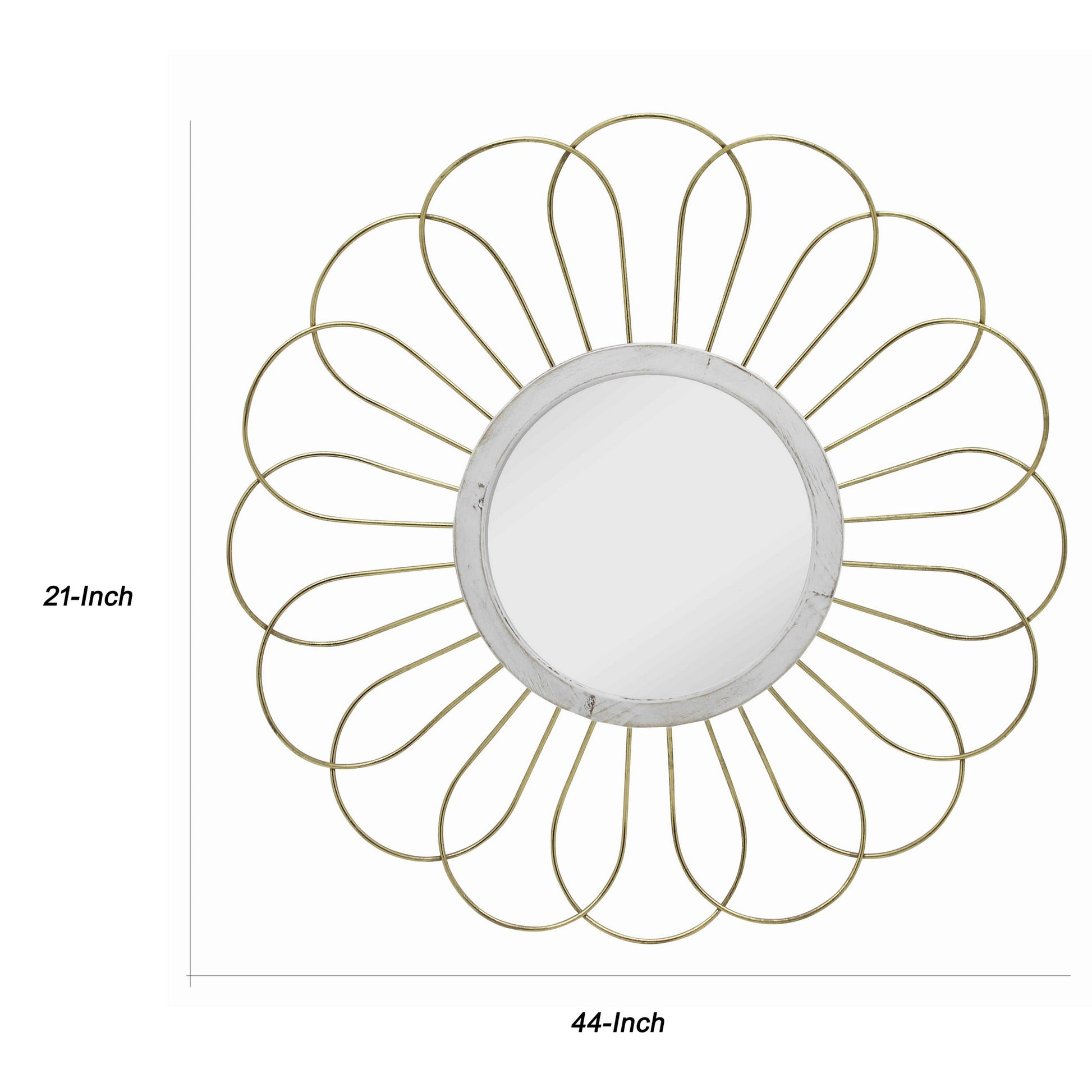 Metal Wall Decor With Round Mirror And Overlapped Flower Petals Gold