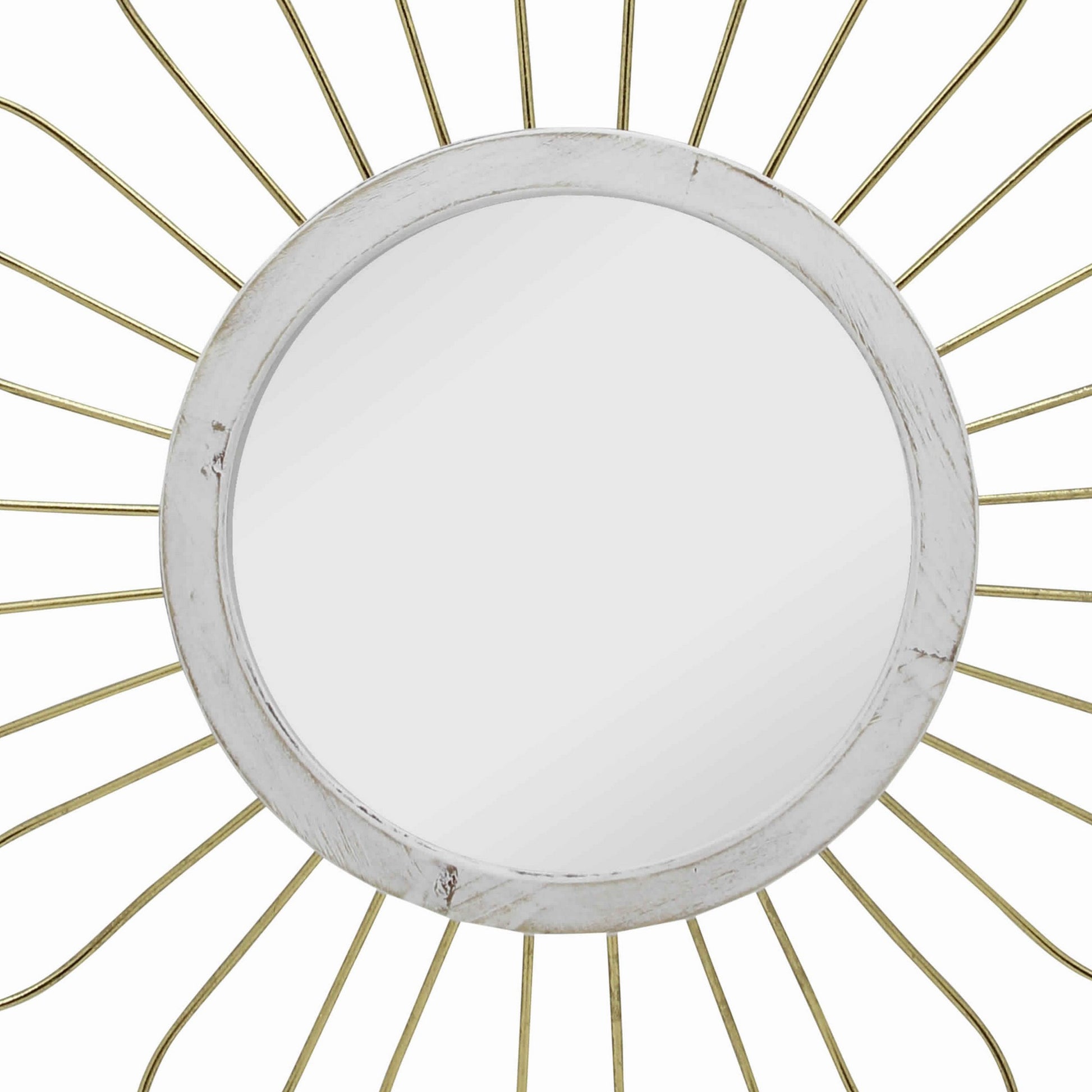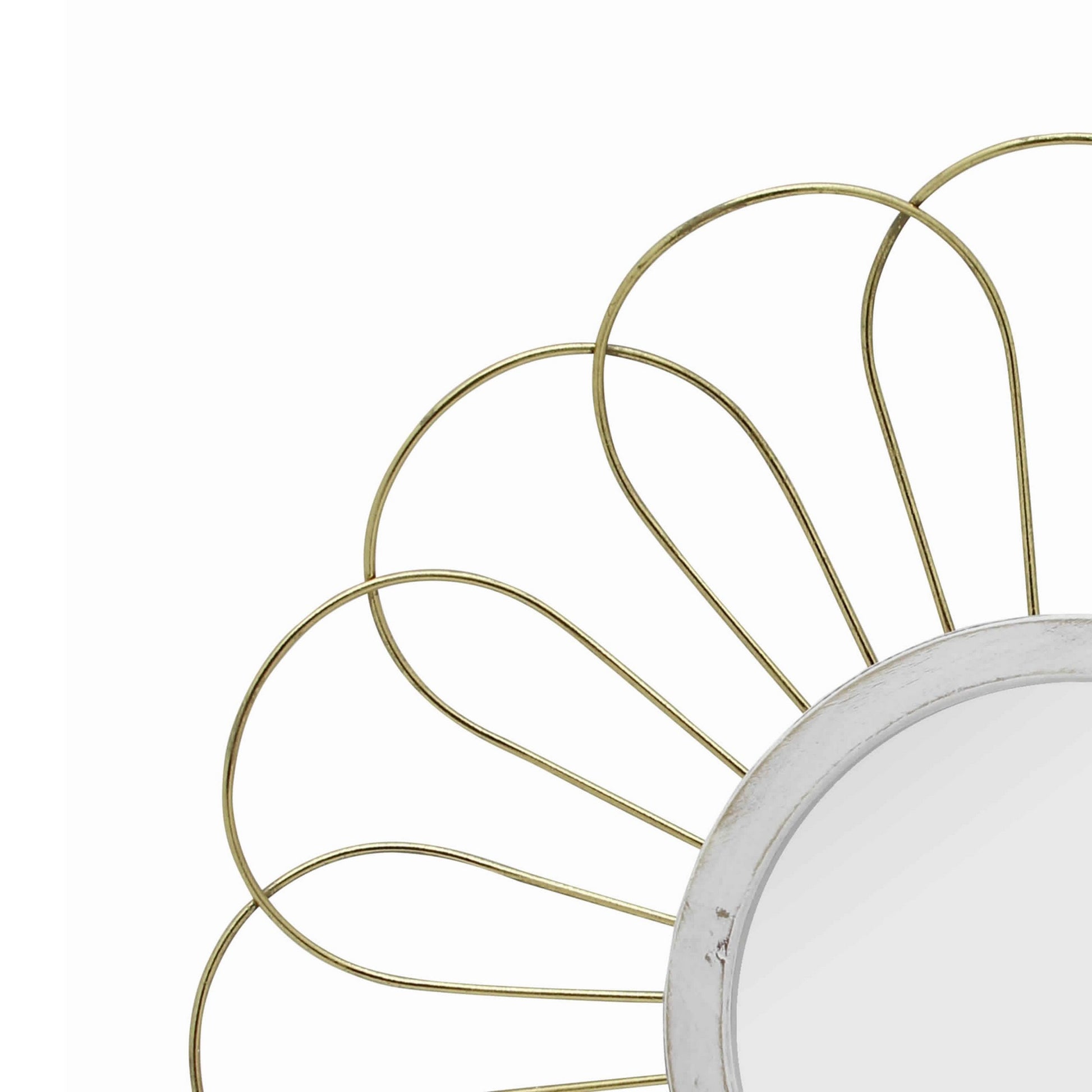Enhance the beauty of your modern looking home with the inclusion of this sturdy metal constructed wall decor featuring contemporary style. Incorporated with mounting hardware at the back, it has round shaped mirror in the center surrounded with overlapped flower petals all over it which completes the look and makes it an ideal piece.