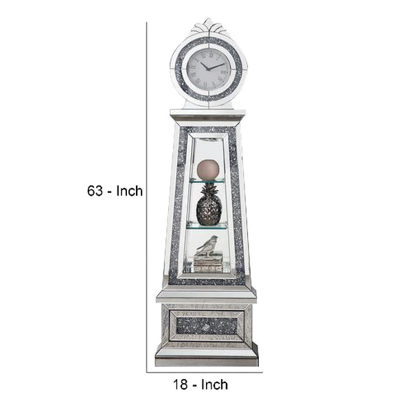 Mirrored Grandfather Clock With 3 Open Compartments Silver