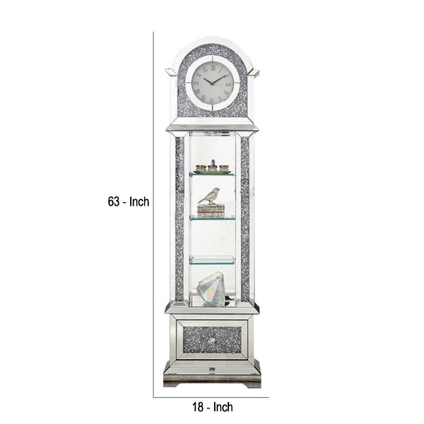 Mirrored Grandfather Clock With 4 Compartments Silver