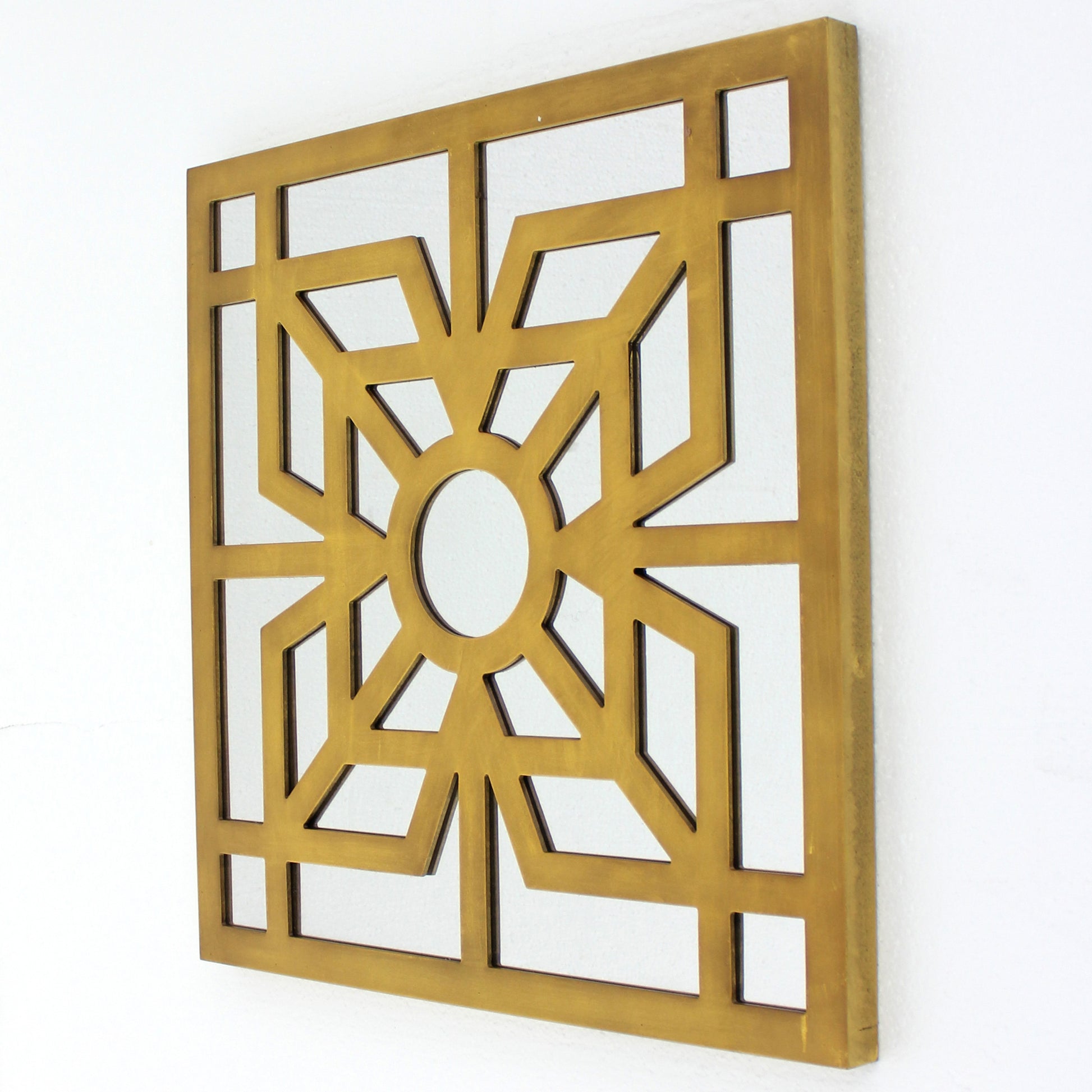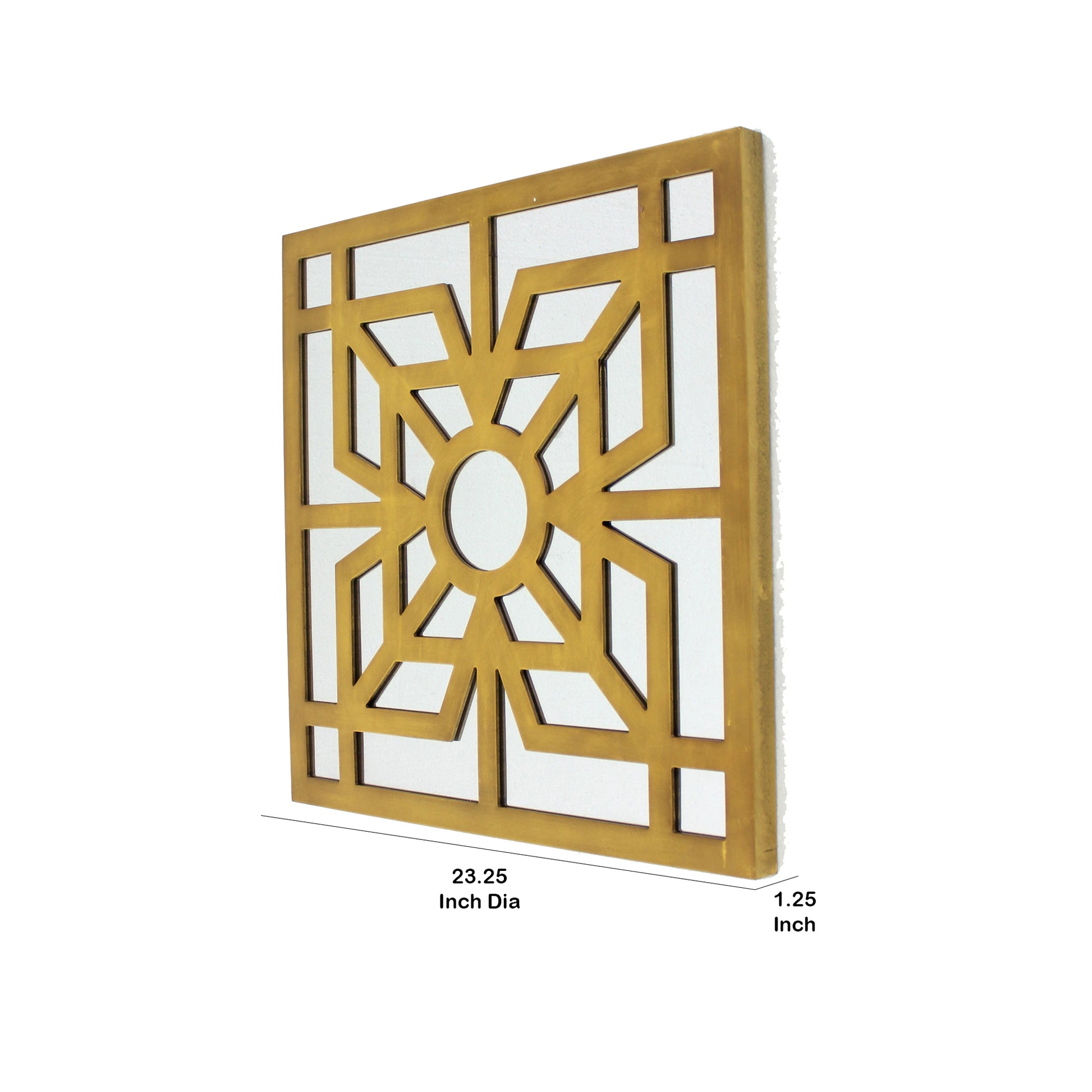 Mirrored Wall Decor With Wooden Floral Overlay On Top Gold And Silver