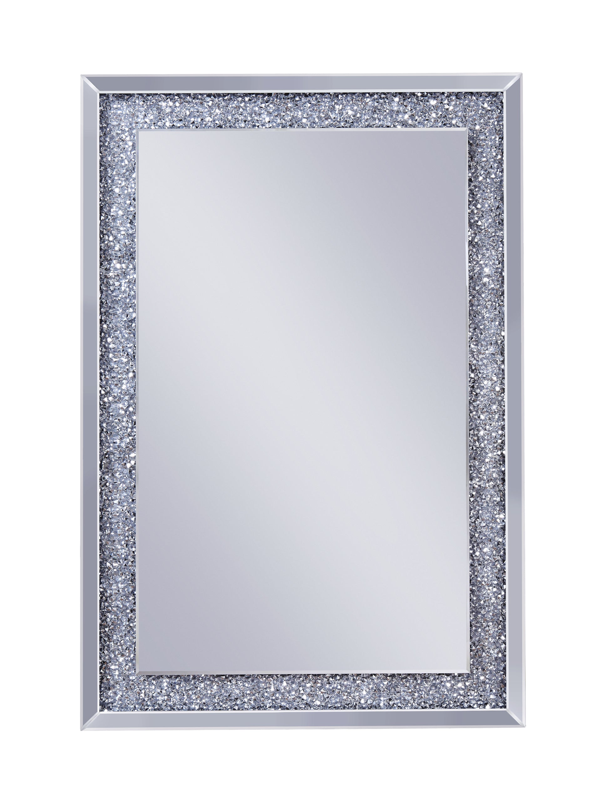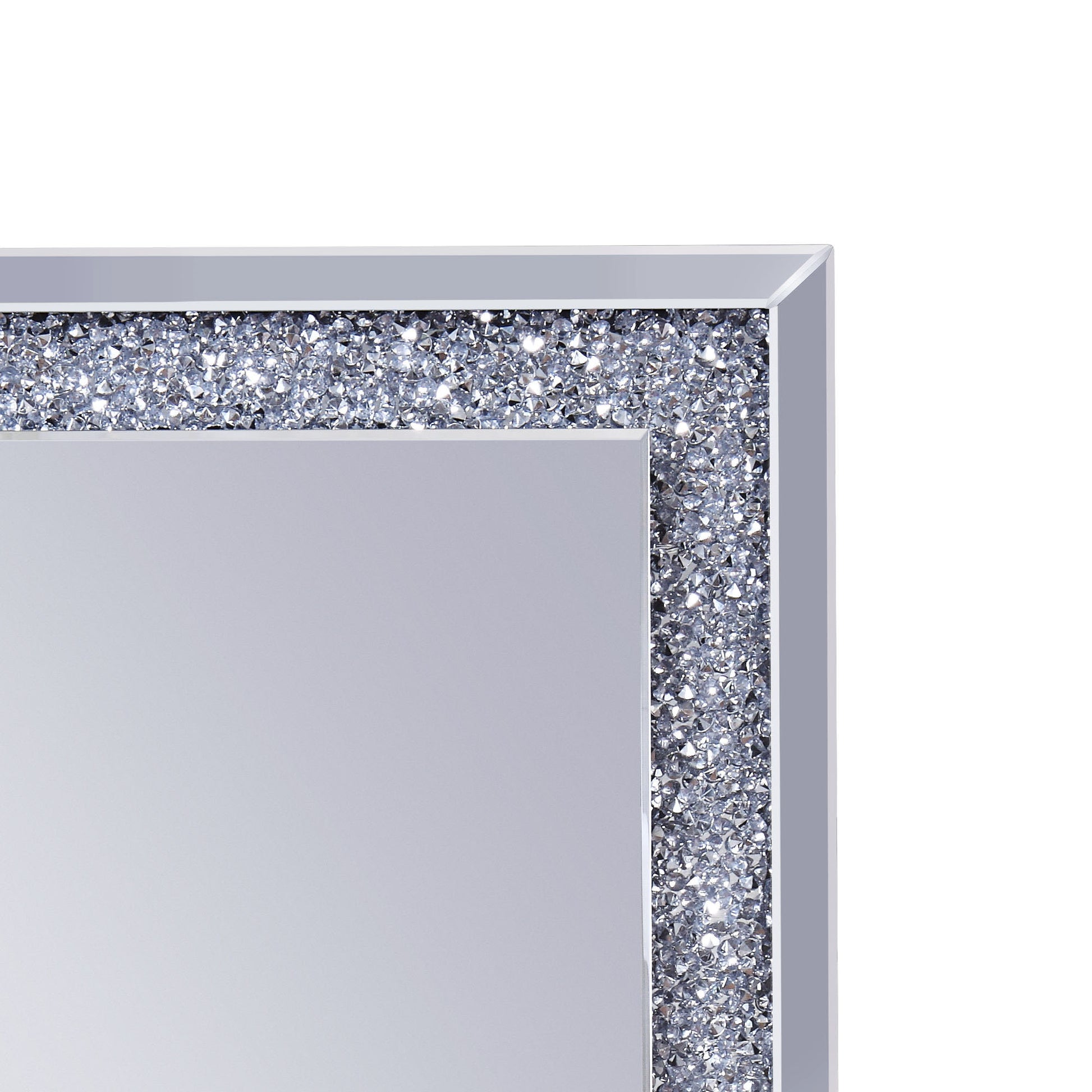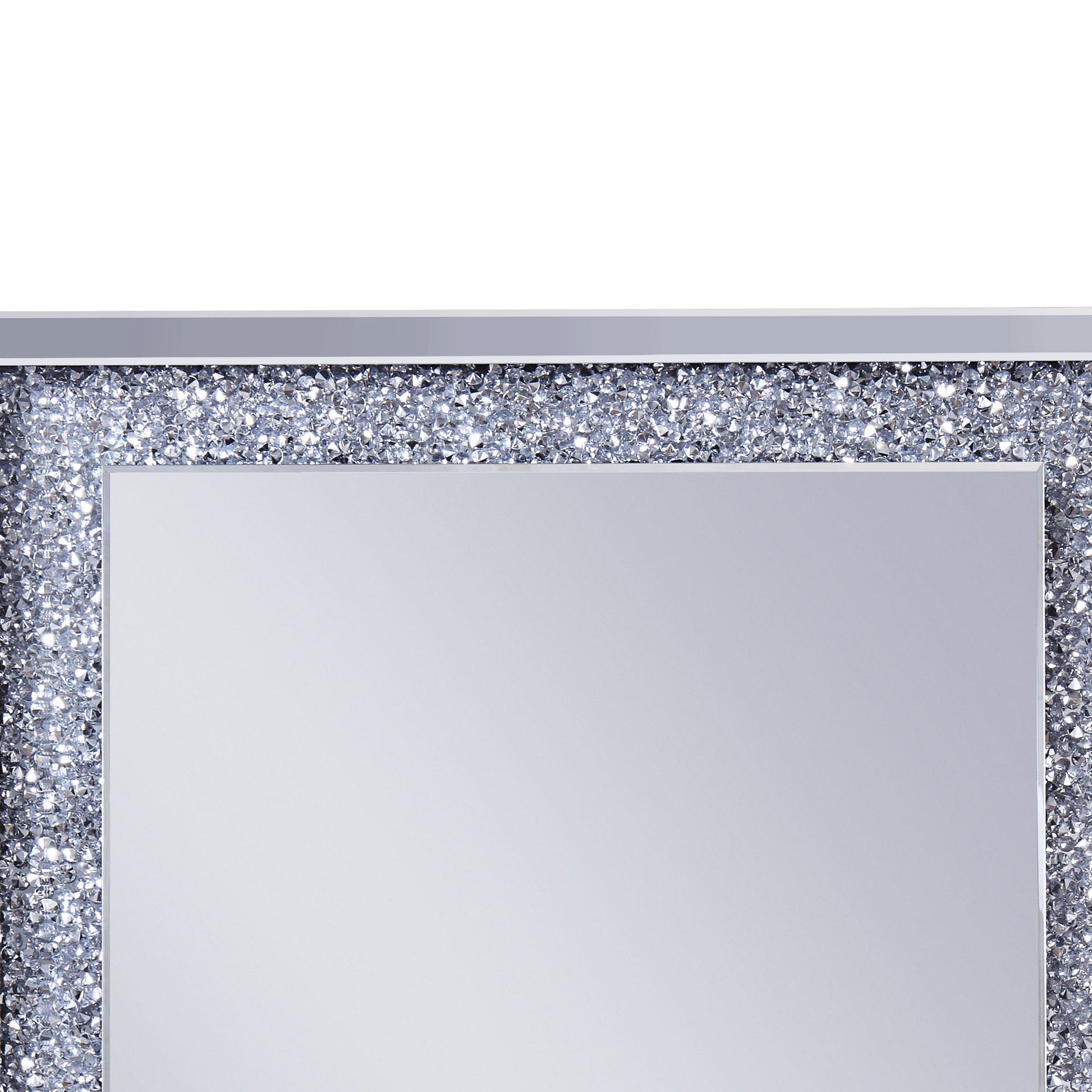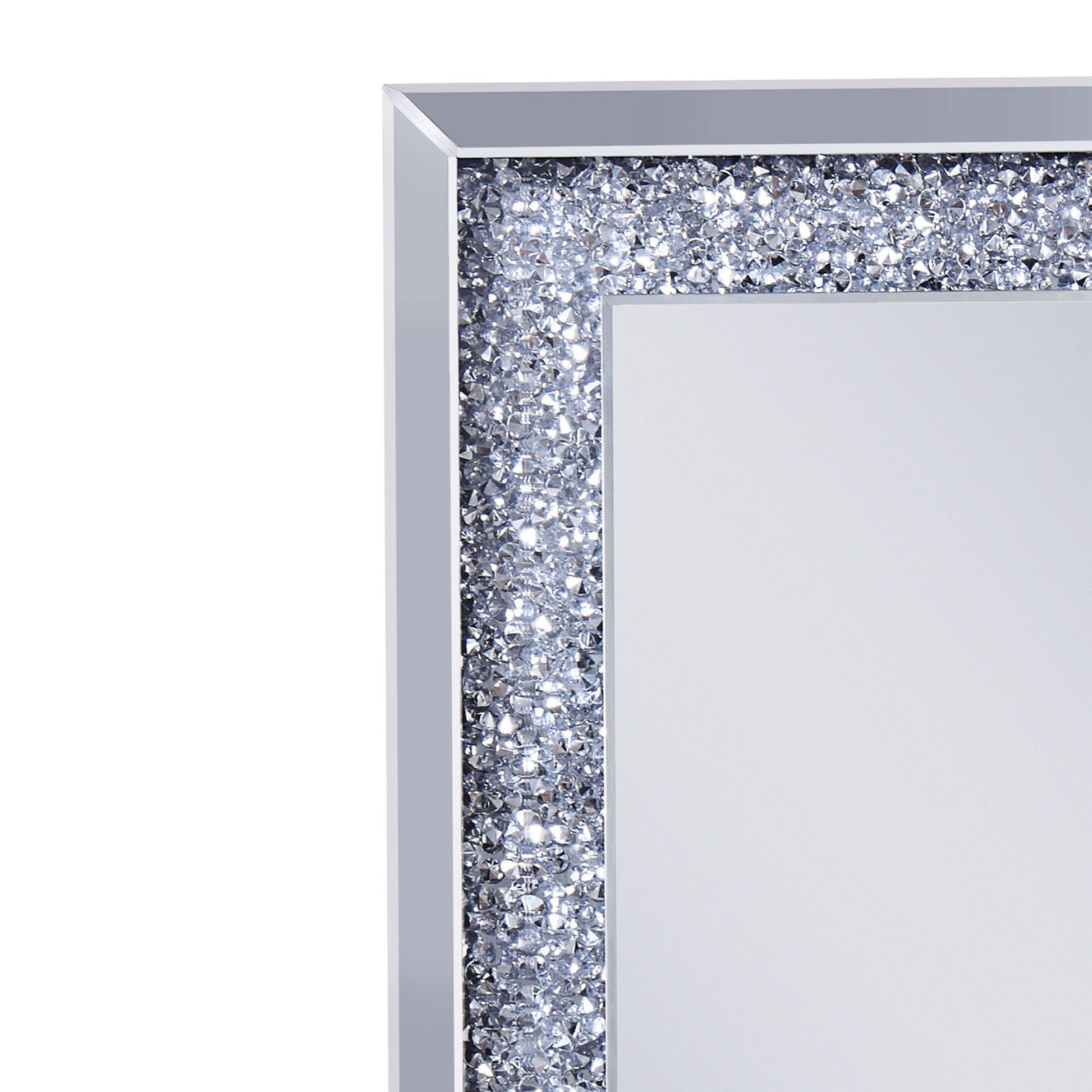 Mirrored Wooden Frame Accent Wall Decor With Faux Crystal Inlay Clear