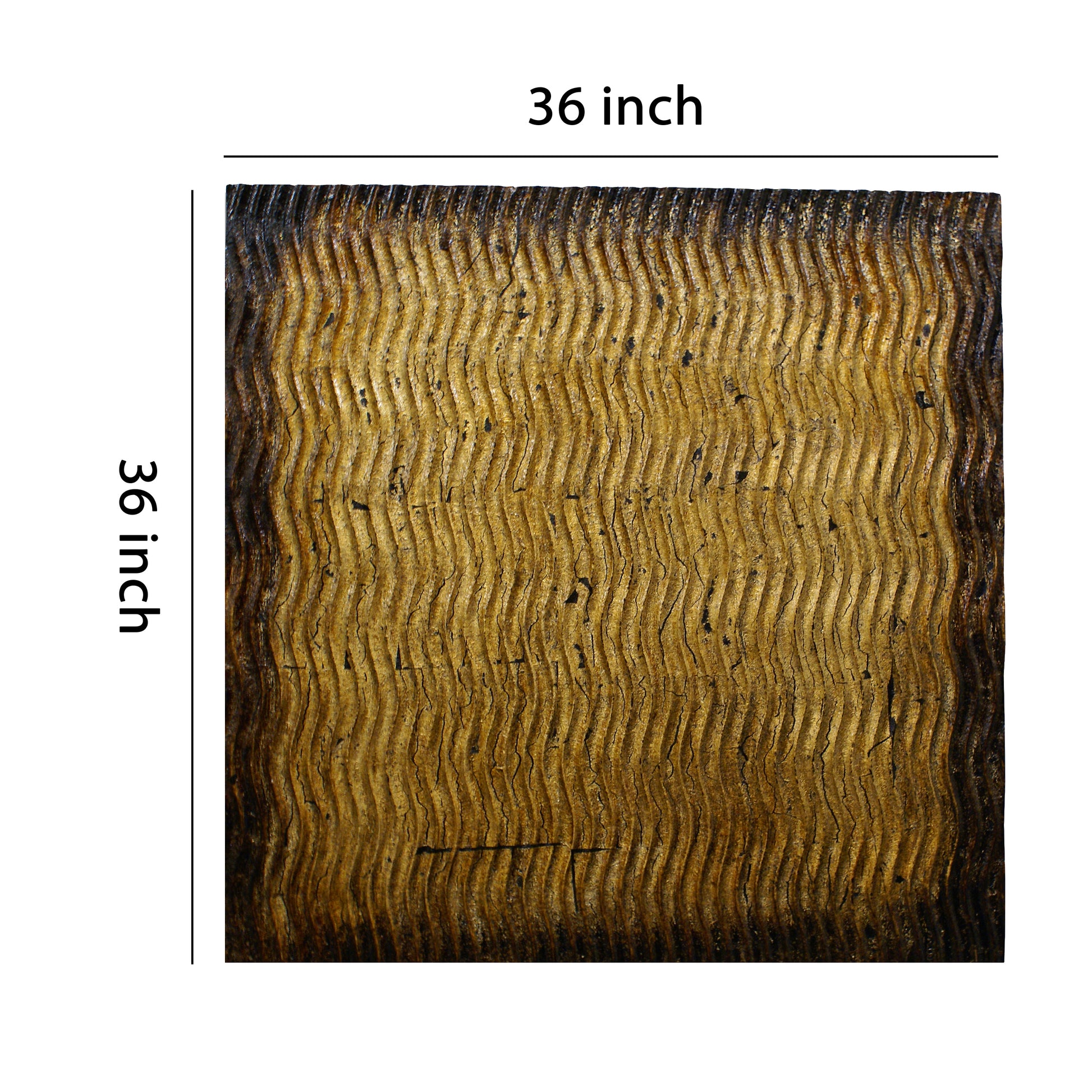 Modern Style Wood Wall Decor With Patterned Carving Large Gold & Brown