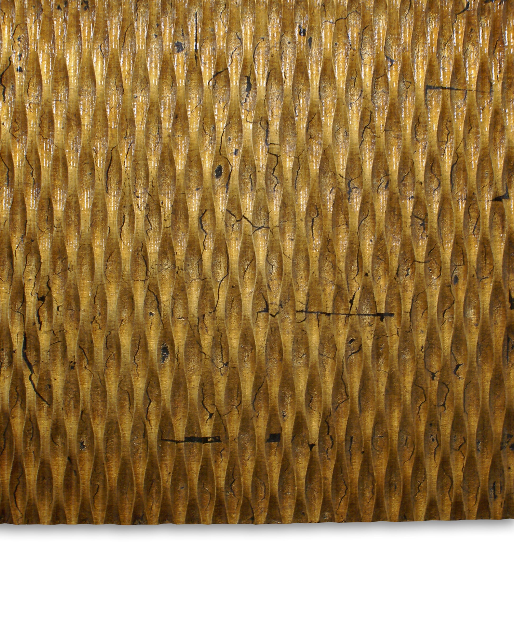 This modern styled wall decor is constructed of patterned wood carvings. This wall piece has a golden colored panel with metallic finish which gives a very rich appearance to it and suites well with different types of room decor. The carving has a wavy pattern with looks subtle yet appealing.