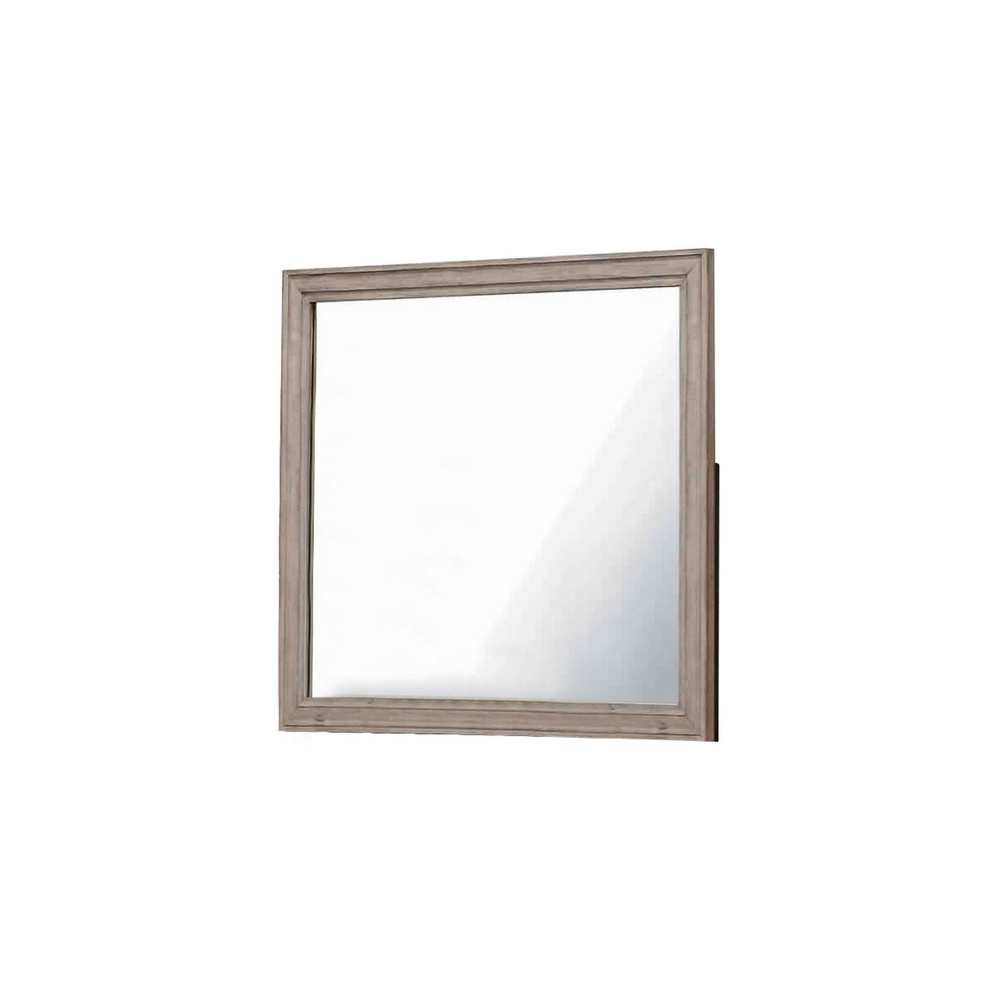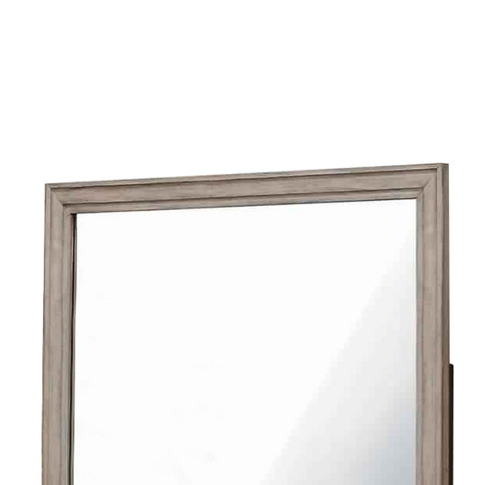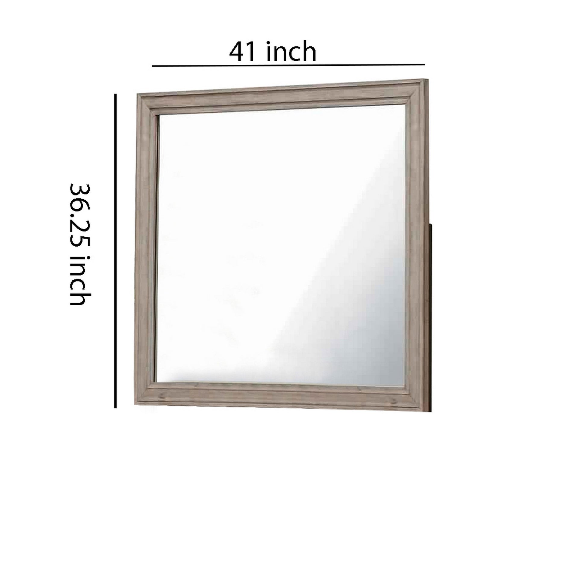 Glorify your home decor with the addition of this transitional style Mirror, constructed sturdily from solid wood, veneer and engineered wood in dark gray finish. It features a molded design frame in light oak brown finish that imparts an appealing character to it. The mounting hardware on the back offers effortless installation.