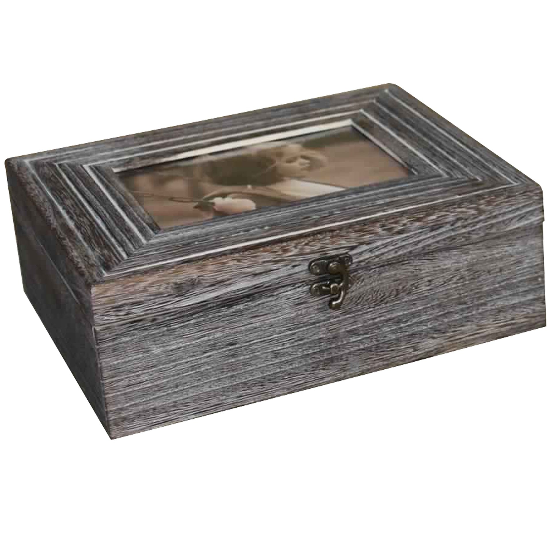 Molded Wooden Storage Box With Photo Frame Lid Set Of 2 Gray