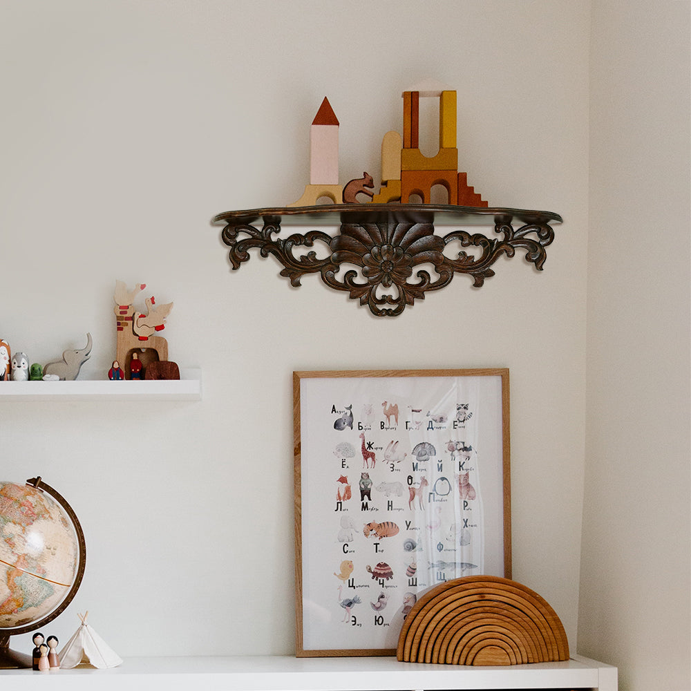 Welcome this vintage style floating shelf to help utilize your wall more efficiently. Keep your family photos, home decorations or light weight décor well organized and beautifully displayed on this hand crafted floating shelf. This shelf will look great in any wall in your living room, bedroom or entry way. Made of high quality wood this shelf has hidden mounting brackets for easy installment on you wall. Once placed in your home this sturdy shelf will help delight everyone with your personal touches.