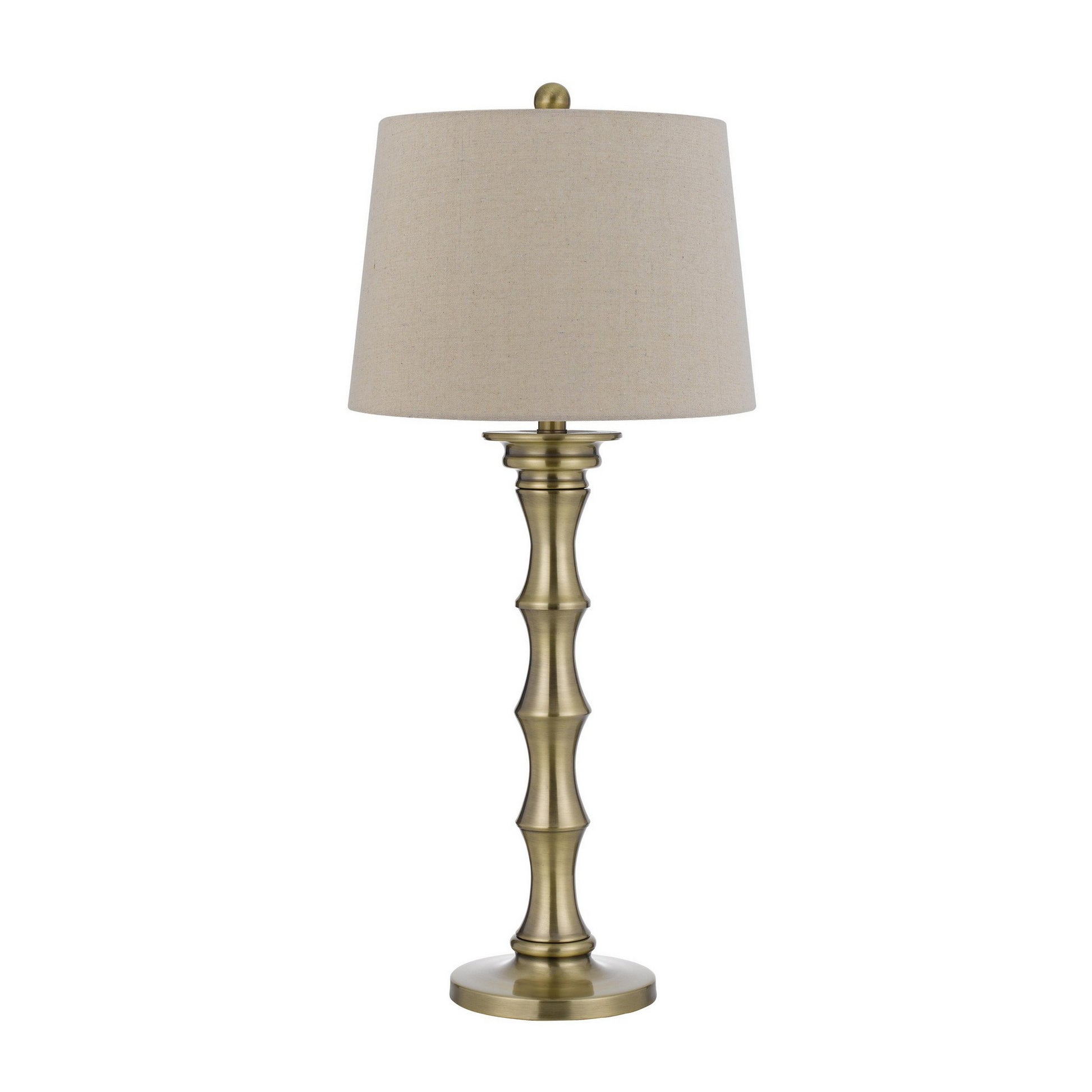 In fashionable classical style, this antique brass finished metal accent table lamp in a set of two is made to give a finishing touch to your living room, office, or bedroom. The sturdy turned pedestal base provides stability, while the ball finial is an accent that adds a subtle vintage look to this already amazing accent piece. Check out our Noah collection for more options.