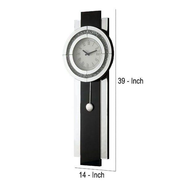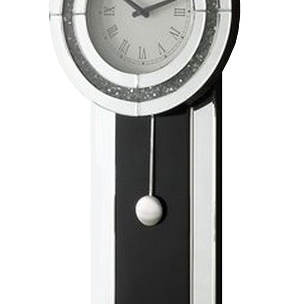 Pendulum Wall Clock With Mirror Trim And Round Shape Silver