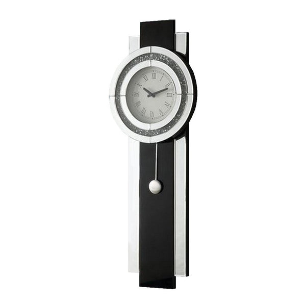 Grandeur meets sophistication with this contemporary style inspired Wall Clock. Featuring a round shape and mirror trim details on the MDF constructed frame, the faux diamond inlays accentuate its charismatic appeal.